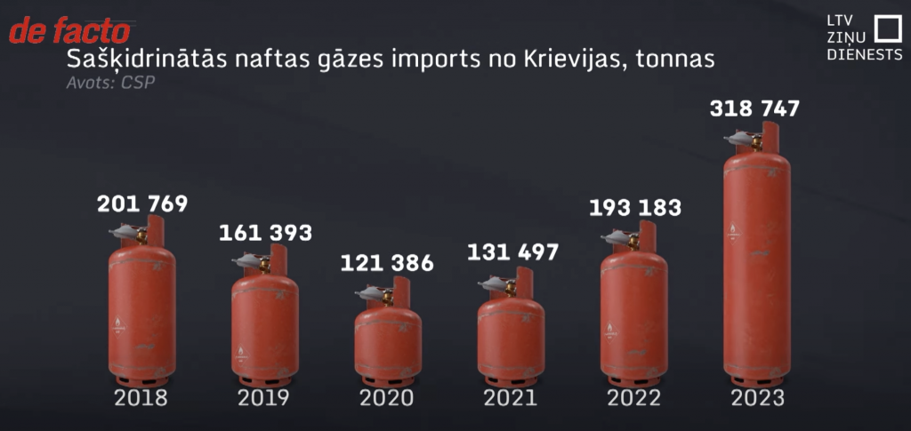 Такой знакомый многим газ в баллонах используют в быту и для автомобилей. Латвия, как сообщала в начале 2024 года местная общественная вещательная компания LSM, импортировала в 2023 году на 65% больше этого газа в сравнении с 2022 годом, когда Россия вторглась в Украину. Причем из всех ископаемых ресурсов, которые Латвия покупает у РФ, за сжиженный газ она платит больше всего.