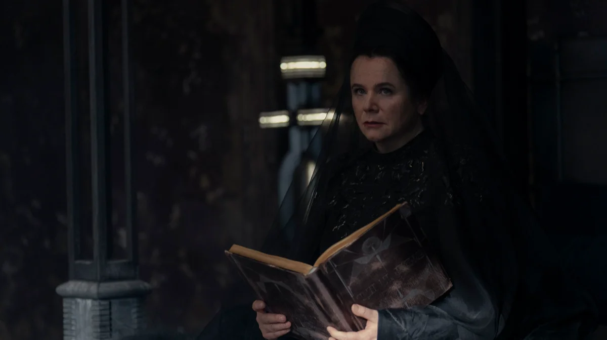 Эмили Уотсон вступила в свою эру злодеек: на Берлинале в этом году она получила «Золотого медведя» за роль в фильме «Мелочи жизни», в котором сыграла сестру-настоятельницу в ирландском монастыре, из тех, что стали известны как прачечные Магдалины, где эксплуатировали и унижали девушек. Валя Харконнен — амбициозная, алчная и упорная — еще одна титульная отрицательная героиня в ее фильмографии. Сложно сказать, что зло к лицу Эмили Уотсон. На протяжении всей карьеры, начиная с ее дебюта в «Рассекая волны» Ларса фон Триера, она играла обаятельных и эмпатичных героинь. Но именно этот эффект «зловещей долины» играет сериалу на руку: то, что могло стать пустой красивой картинкой, спасает присутствие Уотсон и ее мягкого, светящегося юмором и эмпатией, загадочного лица. А Джессика Барден, играющая юную Валю, превосходно справляется со своей частью истории. До съемок «Пророчества» Уотсон не читала книг «Дюны», а в проект ее привлекала именно возможность сыграть такую героиню, как Валя Харконнен. Но Уотсон шутит, что у нее была еще и дополнительная мотивация, ведь таким образом она стала пра-пра-пра-бабушкой Владимира Харконнена, сыгранного у Дени Вильнева ее другом и партнером по «Рассекая волны» Стелланом Скарсгардом. Возможно, именно для этого пересечения вселенной песчаных червей Дюны и кинематографа Ларса фон Триера и существует теперь сериал «Дюна: Пророчество».