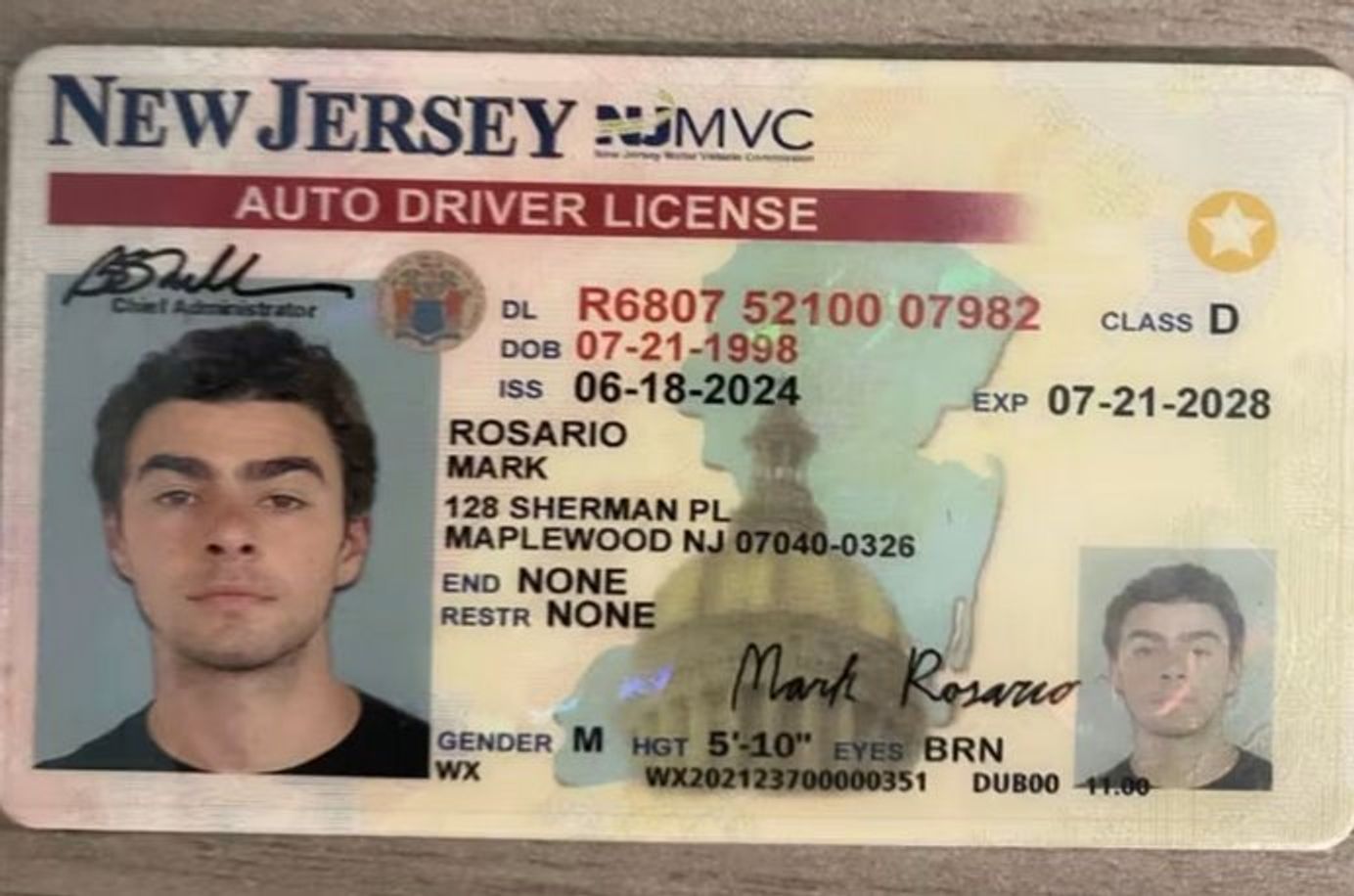 Поддельное удостоверение личности, найденное при Луиджи Манджионе во время задержания