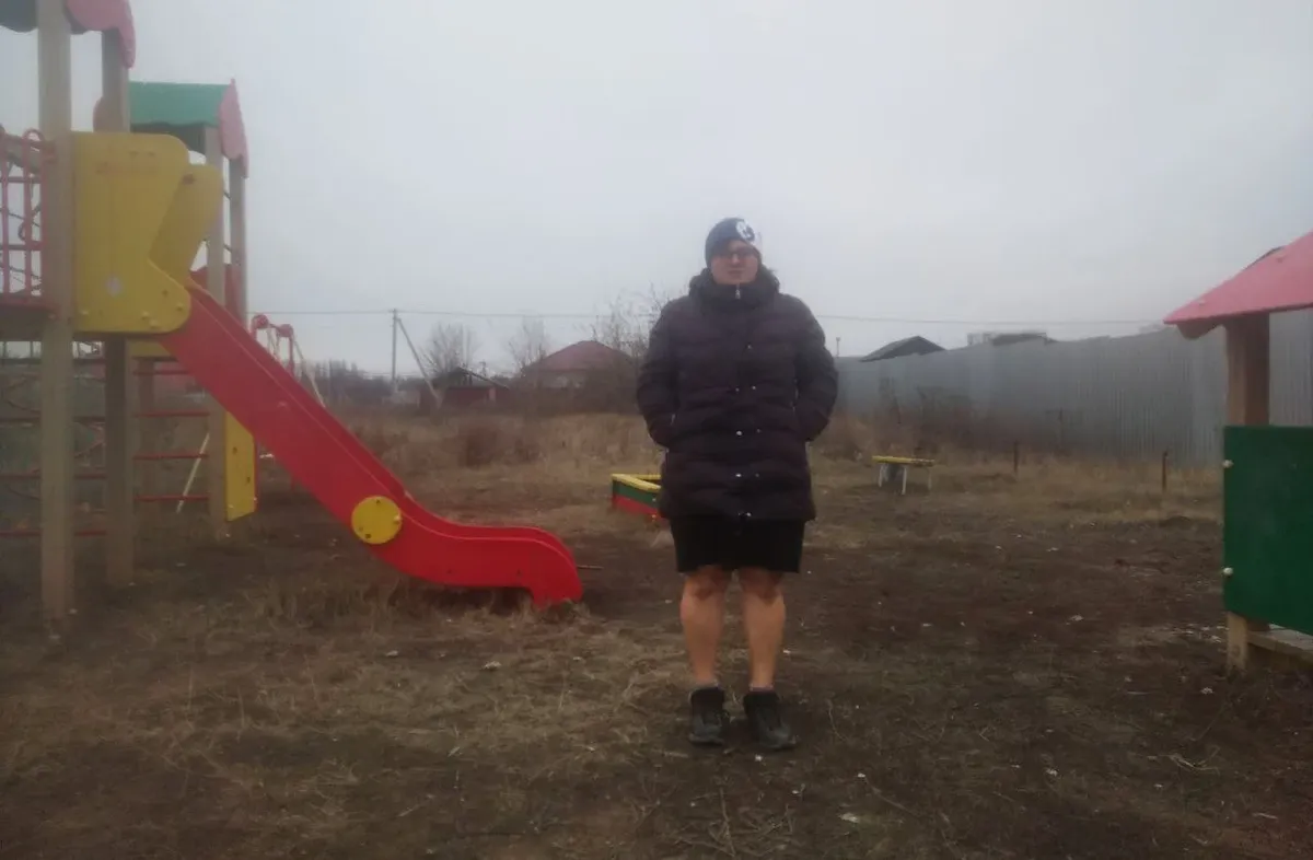 Рядом с домом Селиверстовых — единственная в поселке многодетных детская площадка. Качели, горка, крохотная песочница, заросшая сорняками. Площадку поставили лет десять назад. Веревочная сетка, по которой должны лазать малыши, порвалась, из креплений торчат острые шурупы.