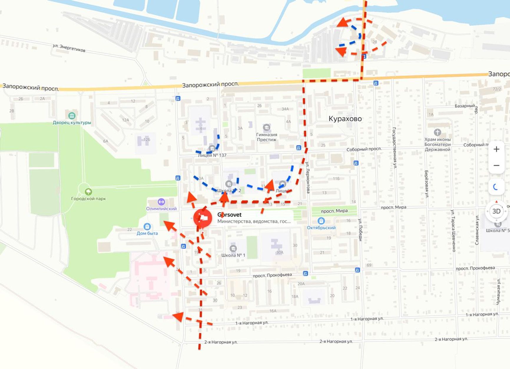 Юрий Котенок демонстрирует ЛБС в самом Курахово. По его информации, сейчас она проходит по улицам Грушевой и Лермонтова в западной части города.
