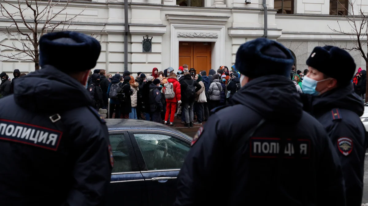 Полицейские у здания Верховного суда РФ во время слушаний по делу о ликвидации Международного Мемориала, Москва, 25 ноября 2021 года. Фото: Максим Шипенков / EPA