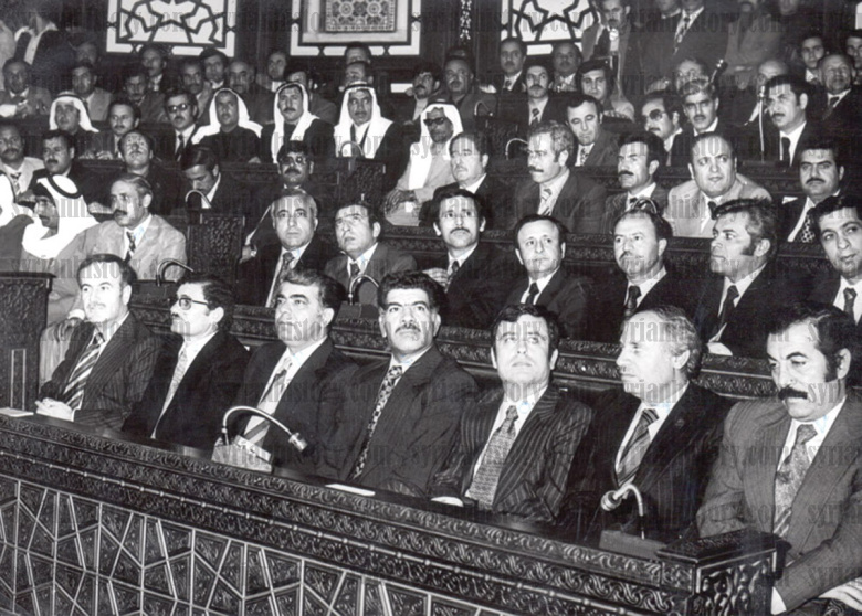 Хафез Асад (сидит слева в первом ряду) на своей первой президентской инаугурации, март 1971 года. Впоследствии диктатор переизберётся ещё четырежды