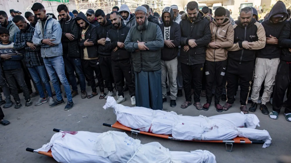 Палестинцы молятся перед телами своих родственников. Фото: Haitham Imad / EPA-EFE