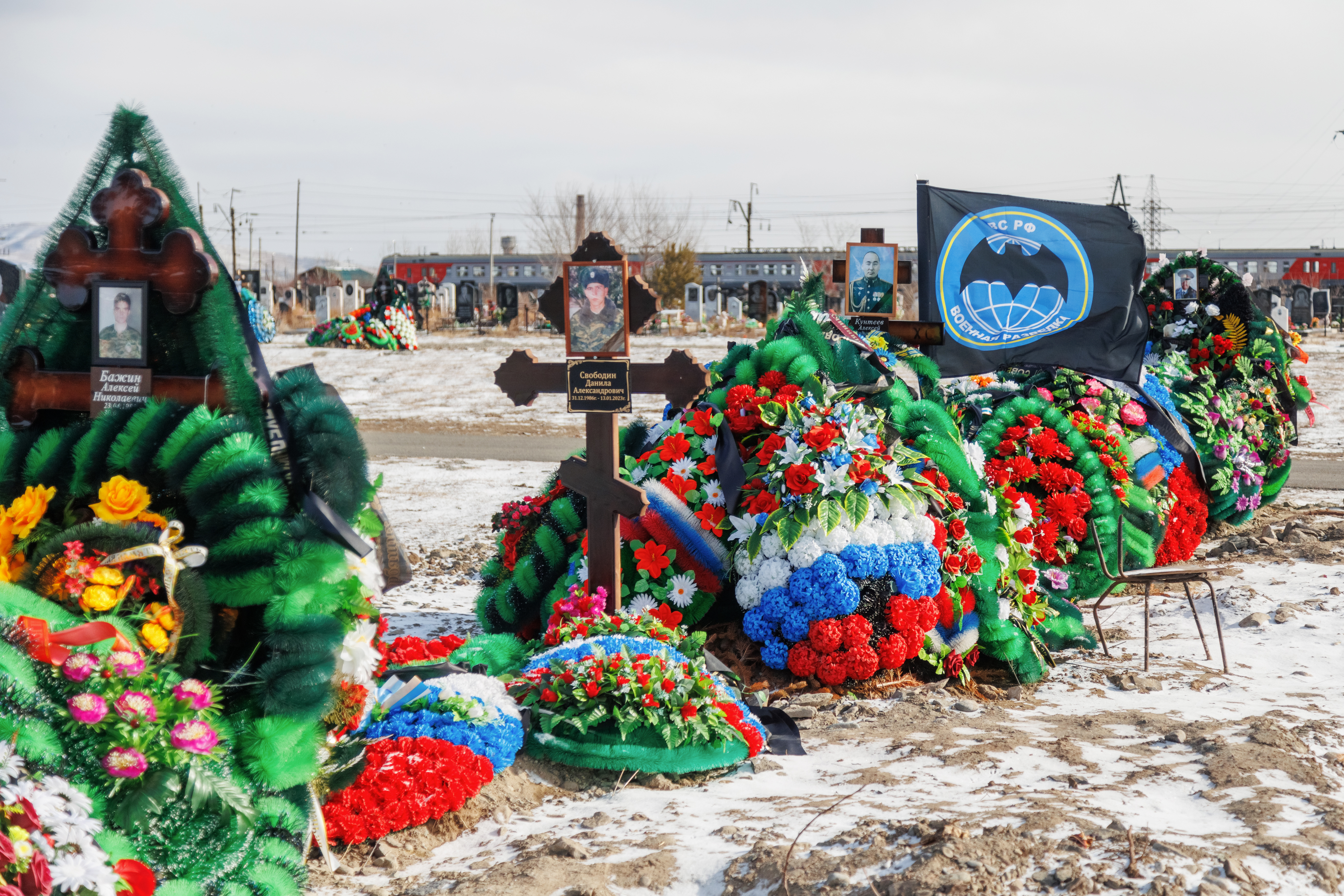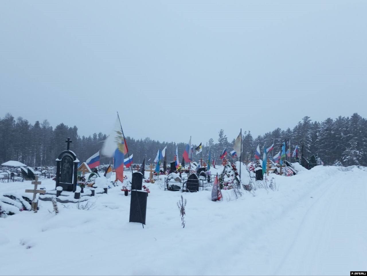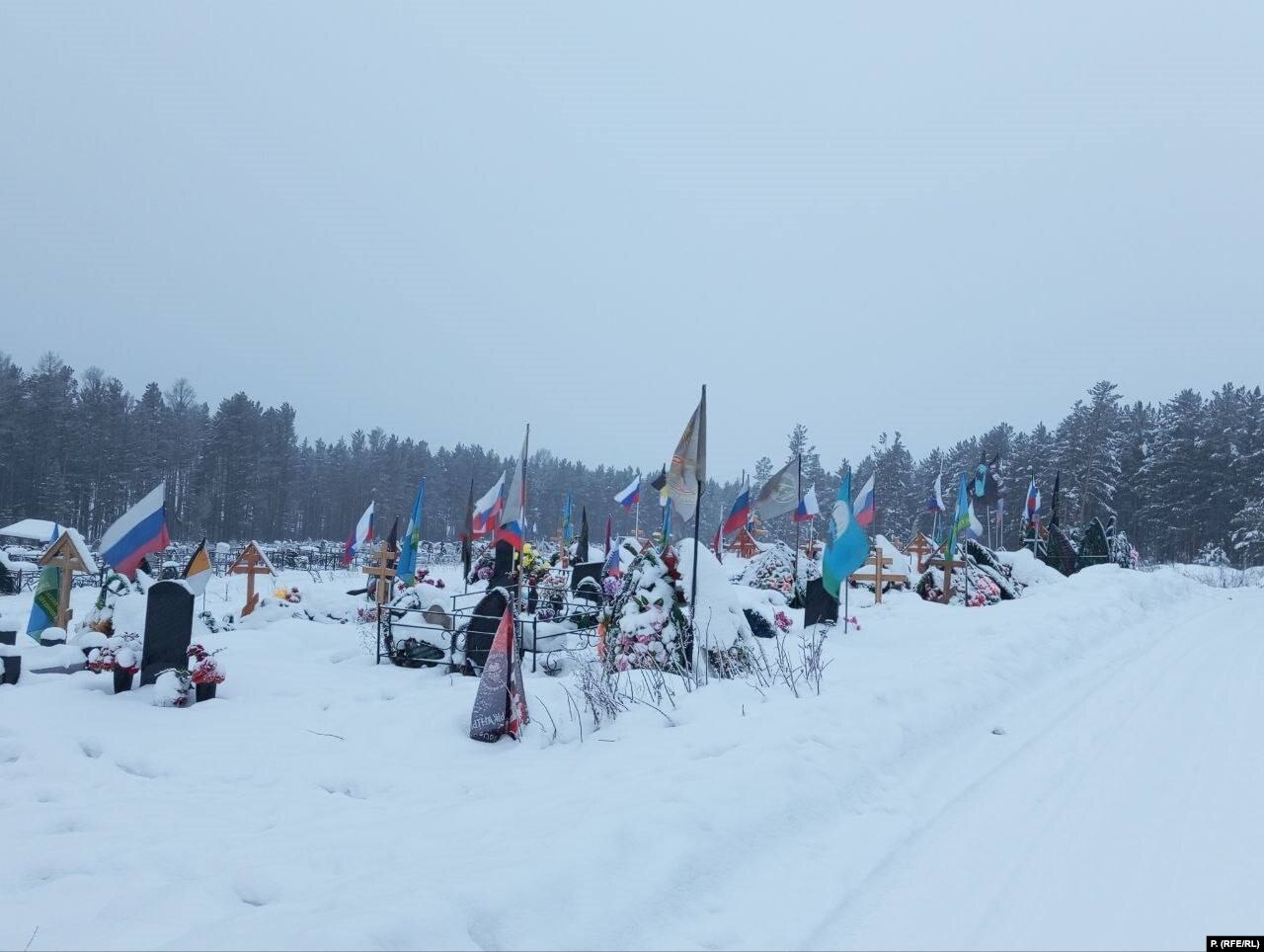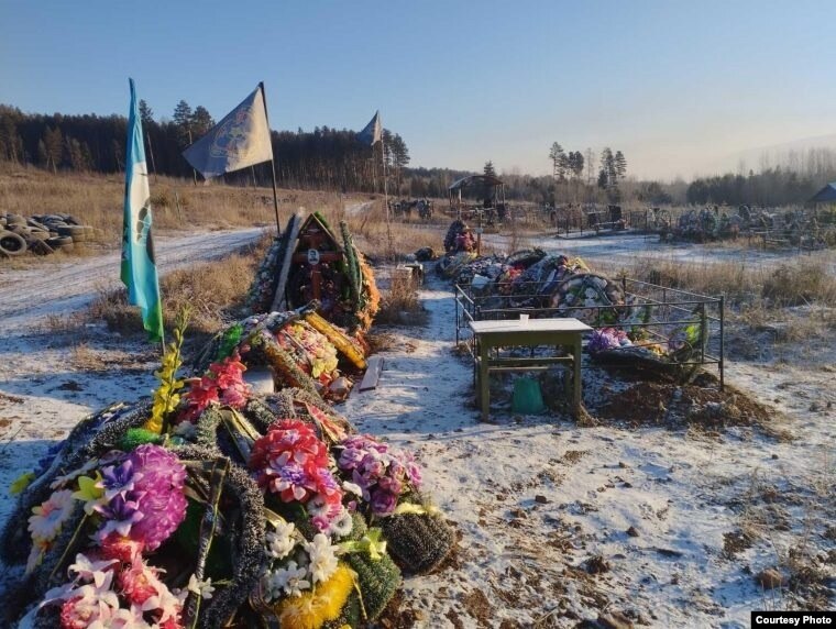Сколько жителей этого сибирского поселка в пять тысяч человек погибло на войне против Украины, официально неизвестно. Катерина говорит, что, по ее подсчетам, на местном кладбище сейчас 40 военных захоронений.