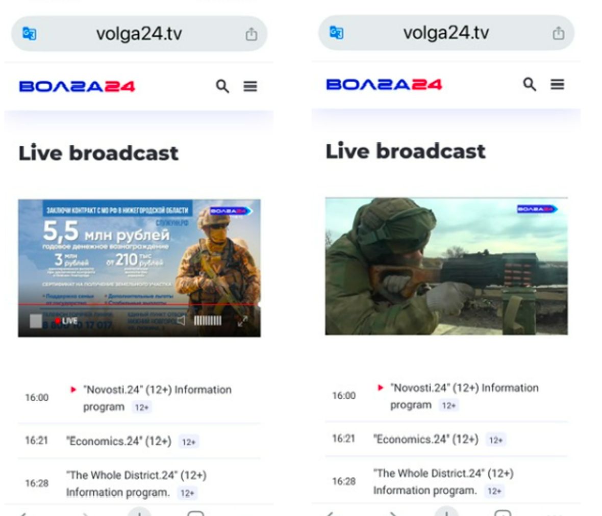 Несмотря на то, что Eutelsat ранее после скандала был вынужден убрать каналы, попавшие под санкции ЕС, оставшиеся каналы всё еще транслируют кремлевскую пропаганду и военную рекламу. Кроме того, французско-британский Eutelsat полностью игнорирует украинские санкции, под которые попали платформа «НТВ-Плюс» и еще 16 российских каналов. Спутник покрывает Украину и оккупированные территории. Скриншоты ниже сделаны RSF 18 декабря в зоне покрытия Eutelsat.