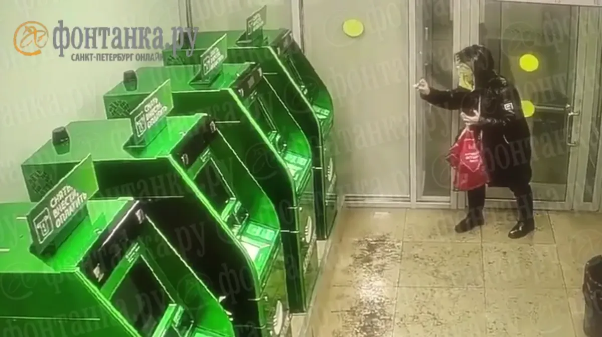 Исполнительница пенсионного возраста чудом осталась жива, ее ищут. Она облила банкоматы горючей жидкостью, а затем подожгла спичкой, держа в другой руке включенный телефон.