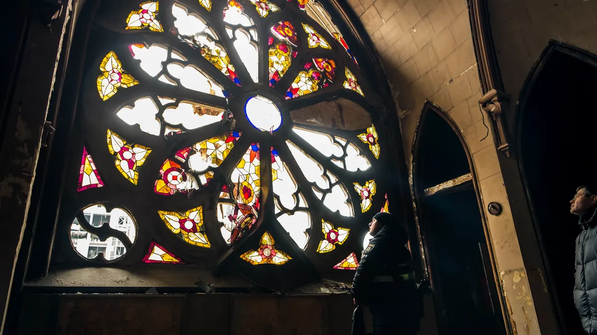 Police officers inspect the damage inside the St. Nicholas Roman Catholic Church near the site of a missile strike in downtown Kyiv, Ukraine, 20 December 2024. Photo: EPA-EFE/MAXYM MARUSENKO