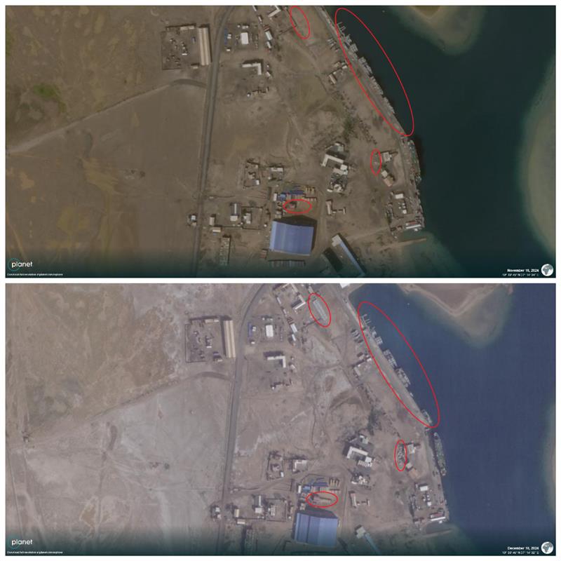 Спутниковые снимки также показывают возросшую активность на российской военно-морской базе в Судане. Москва подписала соглашение об открытии базы на побережье Красного моря в этой африканской стране в 2019 году. Неясно, функционирует ли этот объект в полном объёме.