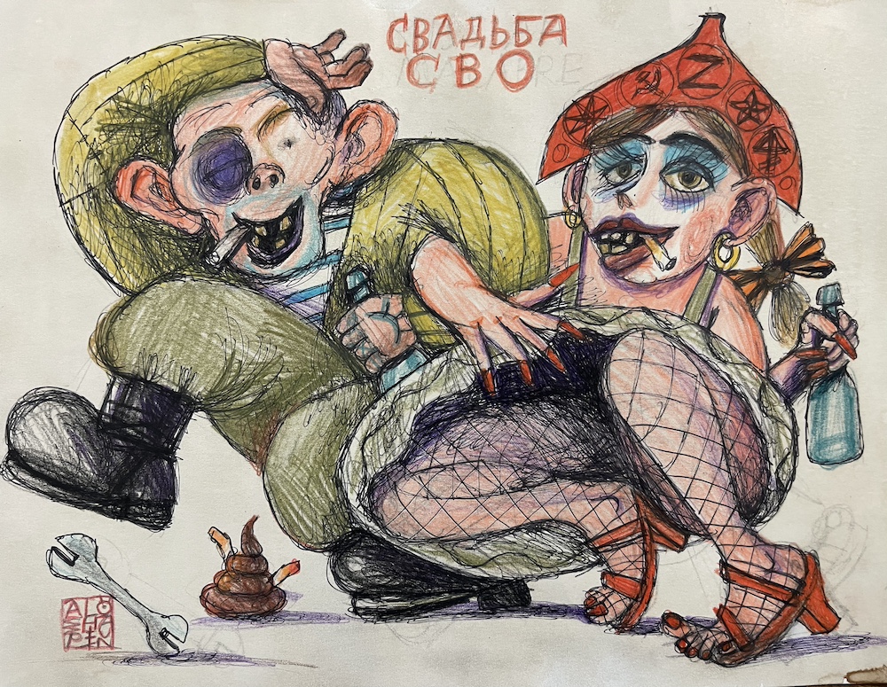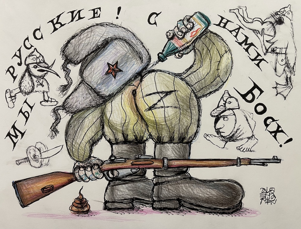– Реальность такова, что россияне поддерживают войну. Это не значит, что они маршируют с флагами, но формы могут быть разными – неучастие, безразличие. Как будто и нет явной волны ура-патриотизма, но они ходят на работу, производят ракеты, поддерживают власть, и делают все, чтобы власть нельзя было критиковать – как Набиуллина (Эльвира Набиуллина, глава Центробанка. – СР). Я как бывший банковский работник, могу сказать, что она прекрасный специалист. Но она поддерживает эту власть больше любого генерала. Нам кажется, что поддержки особой нет. Но мы плохо знаем Россию провинциальную. Значительная масса людей из провинции – это советские еще люди, и рассуждают они так же. Сервильность советская сохранилась, преклонение перед сильной властью. Это все создает такую темную материю, которую мы, люди городов, не видим. И это тоже персонажи моих рисунков.