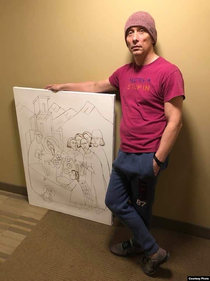 – Это был начальник службы безопасности, нормальный вроде, адекватный человек, ну немного вспыльчивый, эмоциональный, лет пять мы с ним до этого общались. И вот речь зашла о Крыме. Слово за слово, и он на меня бросился с вилкой, мол, я наймит Запада, против России, не поддерживаю присоединение Крыма. Я тогда его оттащил, я занимался боксом. Самое интересное, что это был этнический украинец. Но были и несмешные эпизоды, вплоть до ножевых драк, после чтения моих рассказов в одном из клубов Санкт-Петербурга. Я сильно их провоцировал своими рисунками. При том, что некоторые мои рисунки выполнены в иконописной традиции, и люди усматривали там еще и оскорбление церкви. У меня было много холстов с использованием радужного флага, это все страшно бесило – иконы с ЛГБТ-шным флагом!
