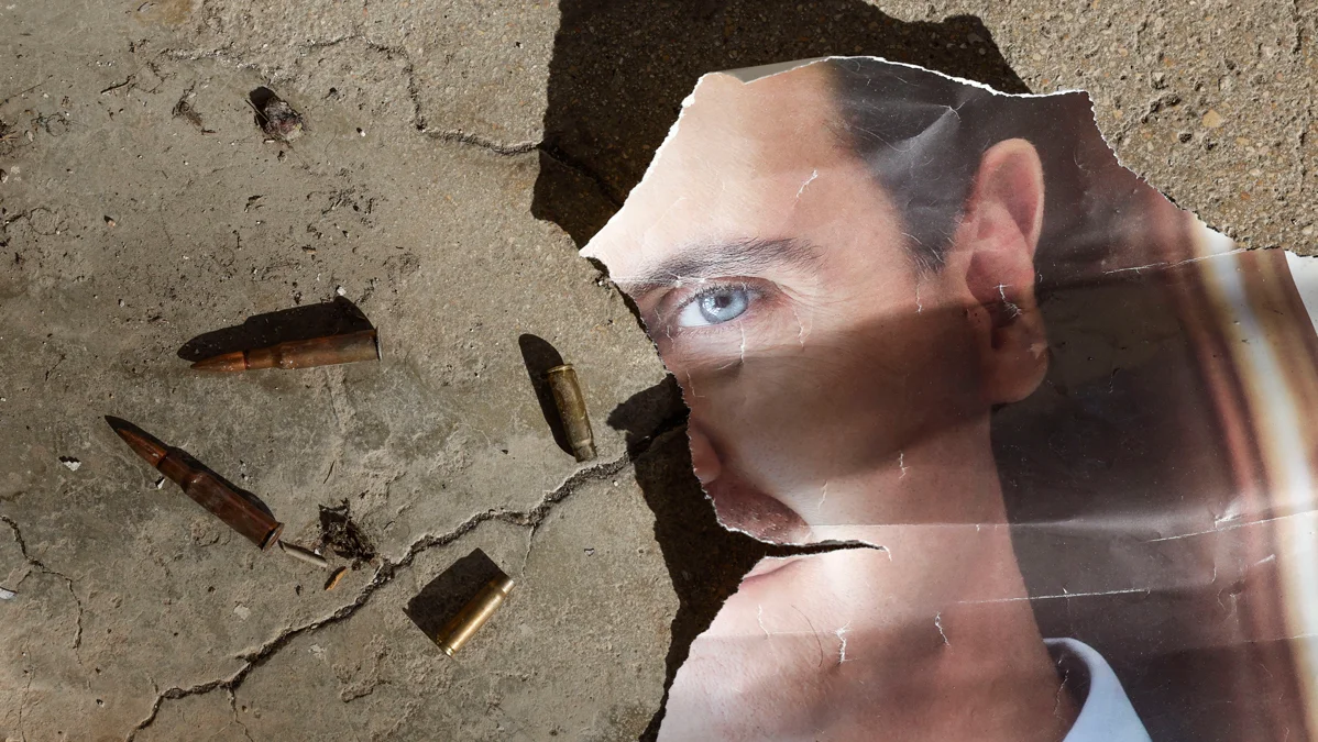 Обрывок портрета бывшего президента Сирии Башара Асада на авиабазе Меззех на окраине Дамаска, Сирия, 16 декабря 2024 года. Фото: Antonio Pedro Santos / EPA