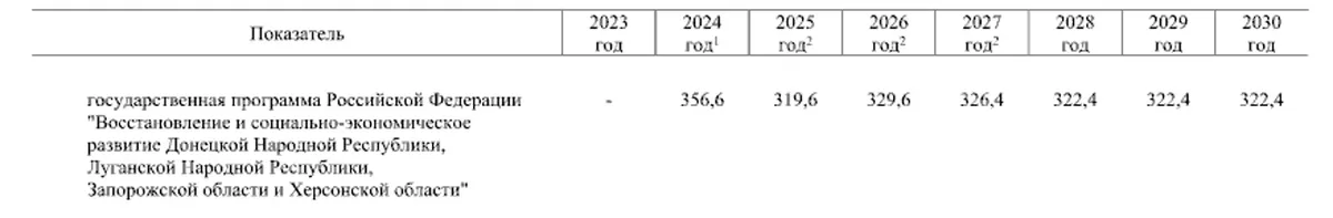 Суммы, которые российское правительство закладывает на развитие присоединенных территорий, обнаружена в опубликованном правительством прогноза по бюджету до 2030 года, обратило внимание издание Faridaily.
