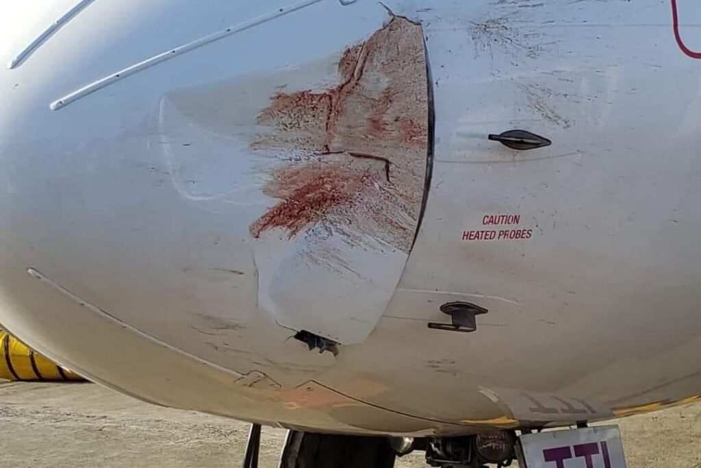 Характерные последствия столкновения самолёта с птицами — вмятины, а не сквозные отверстия