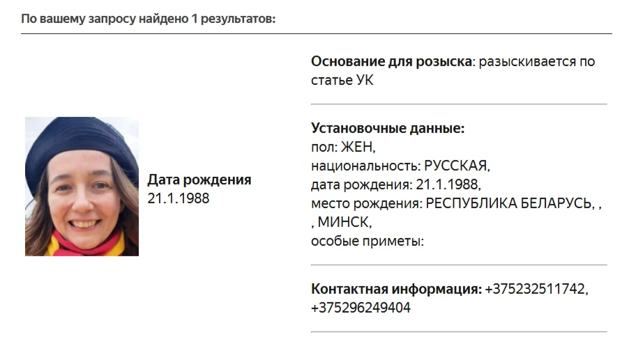 В карточке сказано, что активистка «разыскивается по статье УК». В связи с чем возбуждено уголовное дело, неизвестно. Однако в своем телеграм-канале Нуриева в сентябре этого года сообщила, что ее разыскивают в Беларуси в связи с уголовным делом о «содействии экстремистской деятельности». В карточке розыска МВД России приведены беларуские контактные номера телефонов.