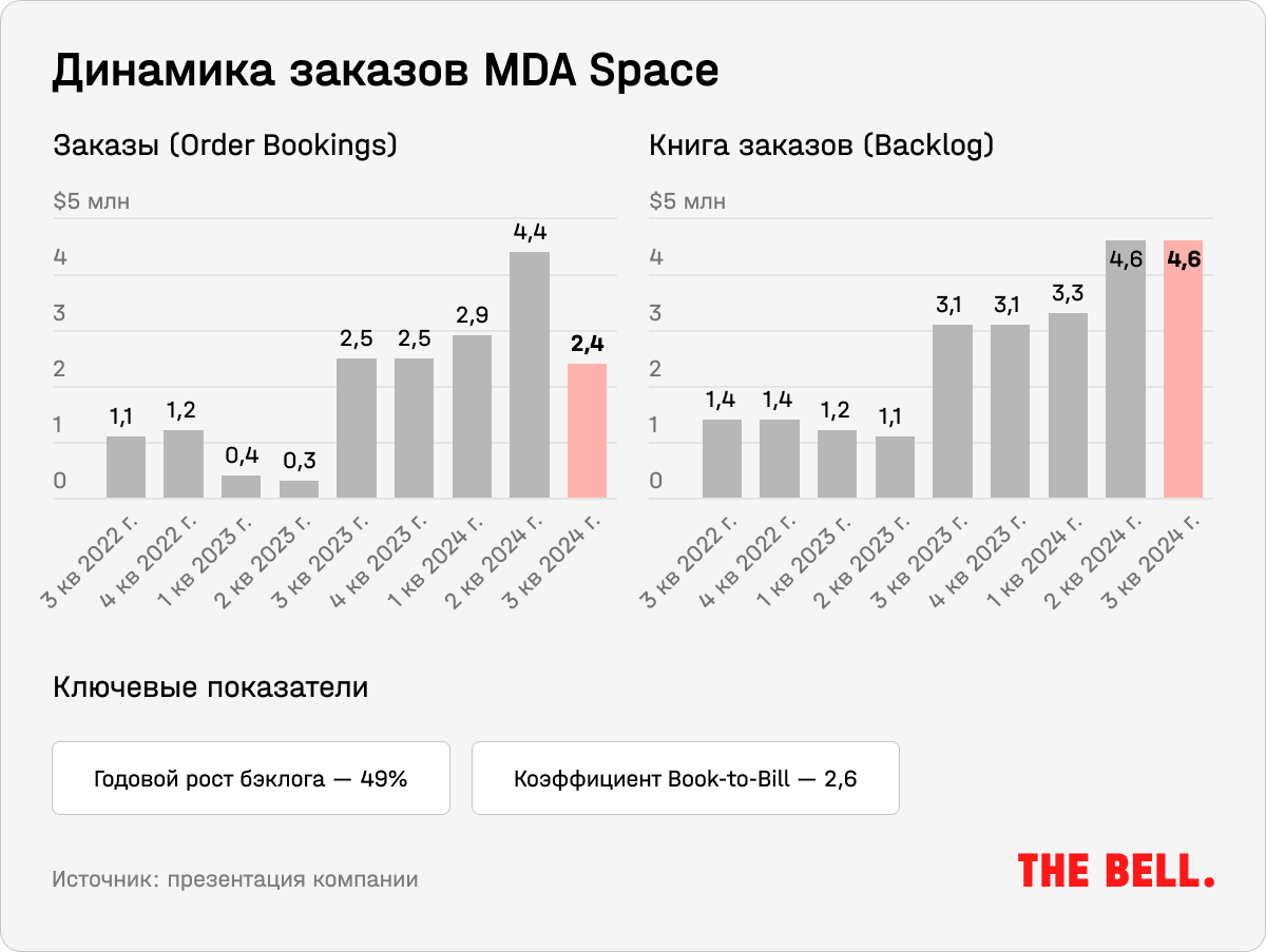 Уже сейчас спрос на услуги компании настолько велик, что по итогам последнего (третьего) квартала, ее книга заказов (бэклог) выросла год к году на 49%. Отношение заказов к выручке за последние 12 месяцев (LTM Book-to-Bill Ratio) составляет 2,6, что говорит о стабильности заказов в будущем. За последние 12 месяцев (LTM) компания получила новые заказы на $2,4 млрд, а крупнейшим стал миллиардный контракт от Канадского космического агентства (CSA) на следующие этапы программы Canadarm3 — передовой космической робототехнической системы.