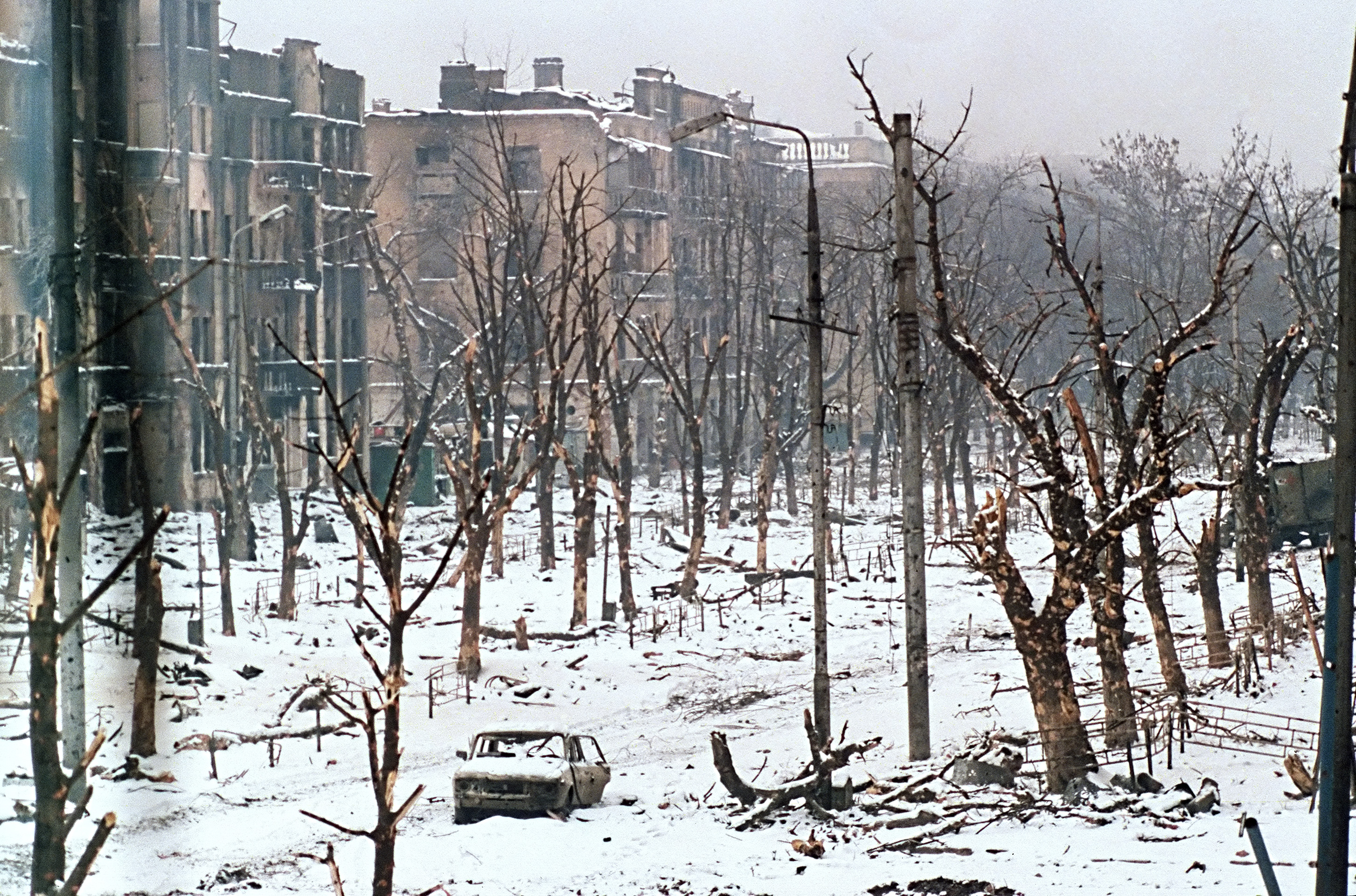 Война лично для меня началась в одно декабрьское утро. Город уже несколько дней как бомбили. Я вывозил мою сестру с ее маленькими детьми из города. Подъехал к Садовому кольцу в тот момент, когда только произошел авиаудар. Там был небольшой рынок, по нему самолет выпустил несколько ракет, и, когда люди бросились на помощь раненым, самолет развернулся и пустил ракеты во второй раз. Когда я подъехал, горели ларьки: трупы, запах гари. Там стояла разбитая газель, водитель лежал на руле так, что можно было подумать, что он заснул – если бы не кровь и раскуроченная машина.