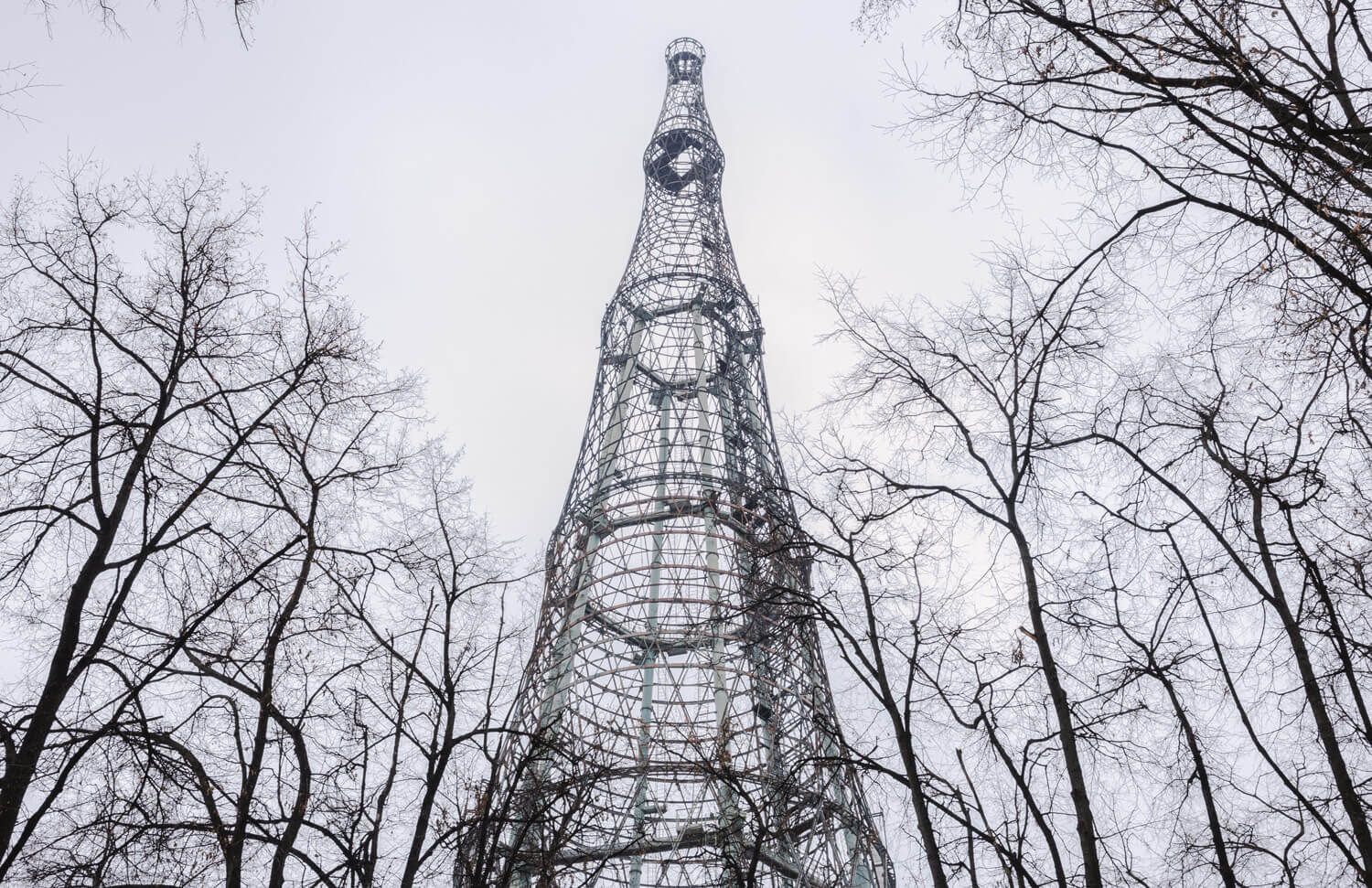 Ангелина передает фотографии Шуховской телебашни на Шаболовке для Славы