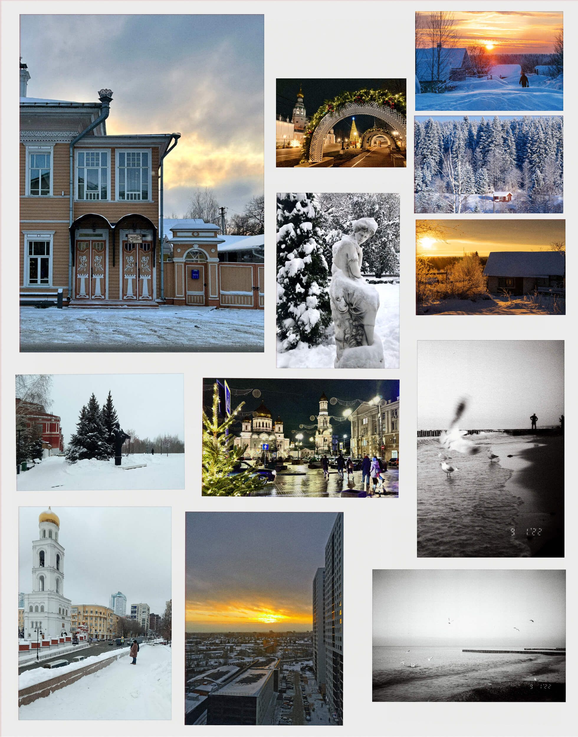 Бо́льшая часть фотографий сделана с 2022 года по настоящий момент. На них детали дореволюционной архитектуры, парк имени Горького, руины Парамоновских складов, Соборная площадь и немного стрит-арта, оставшегося после двух фестивалей.