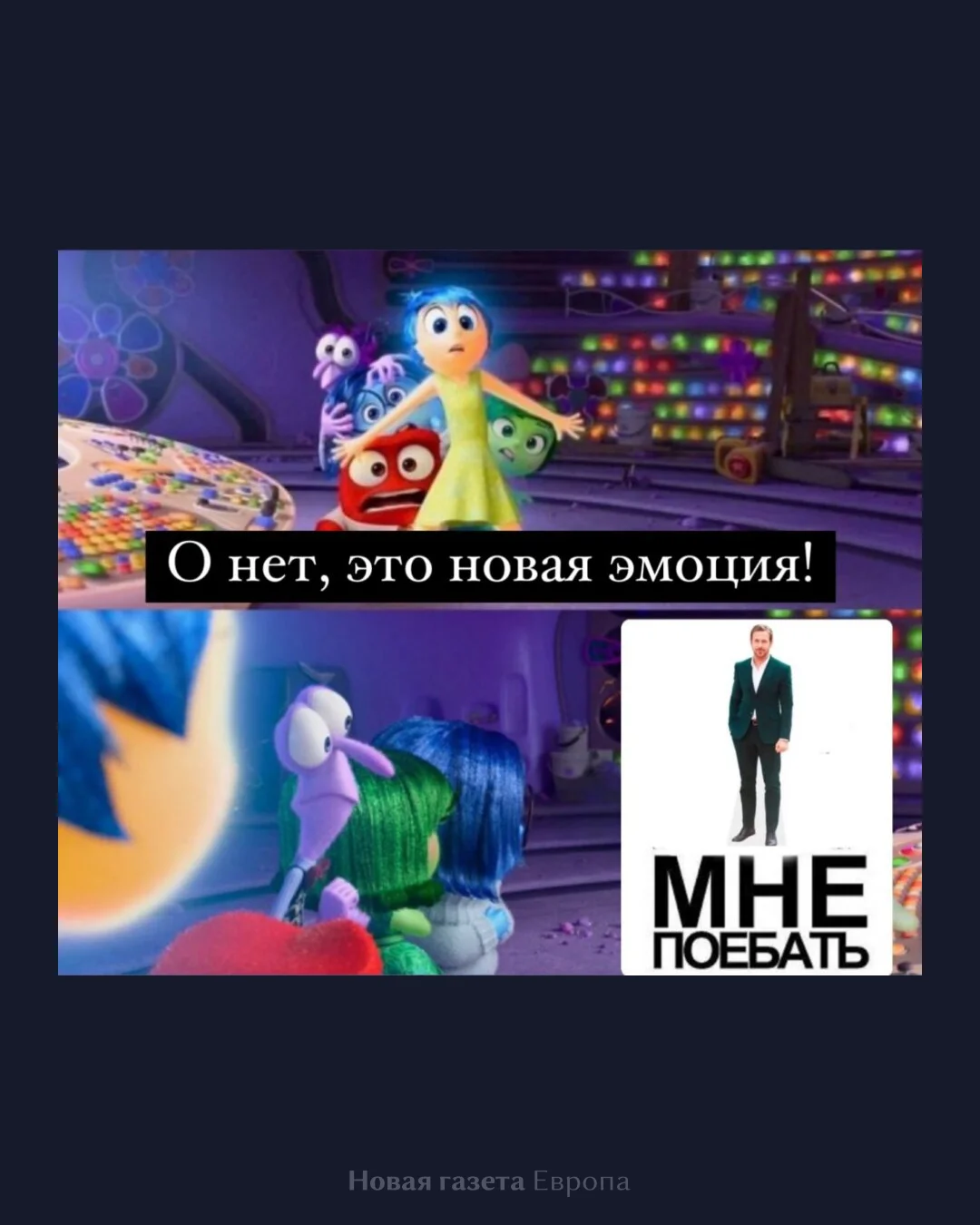 Летом на экраны вышла вторая часть мультика «Головоломка». В одной из сцен показали появление новой эмоции — Тревожности. Кадр из трейлера, в котором Радость впервые видит Тревожность, стал шаблоном для мема.