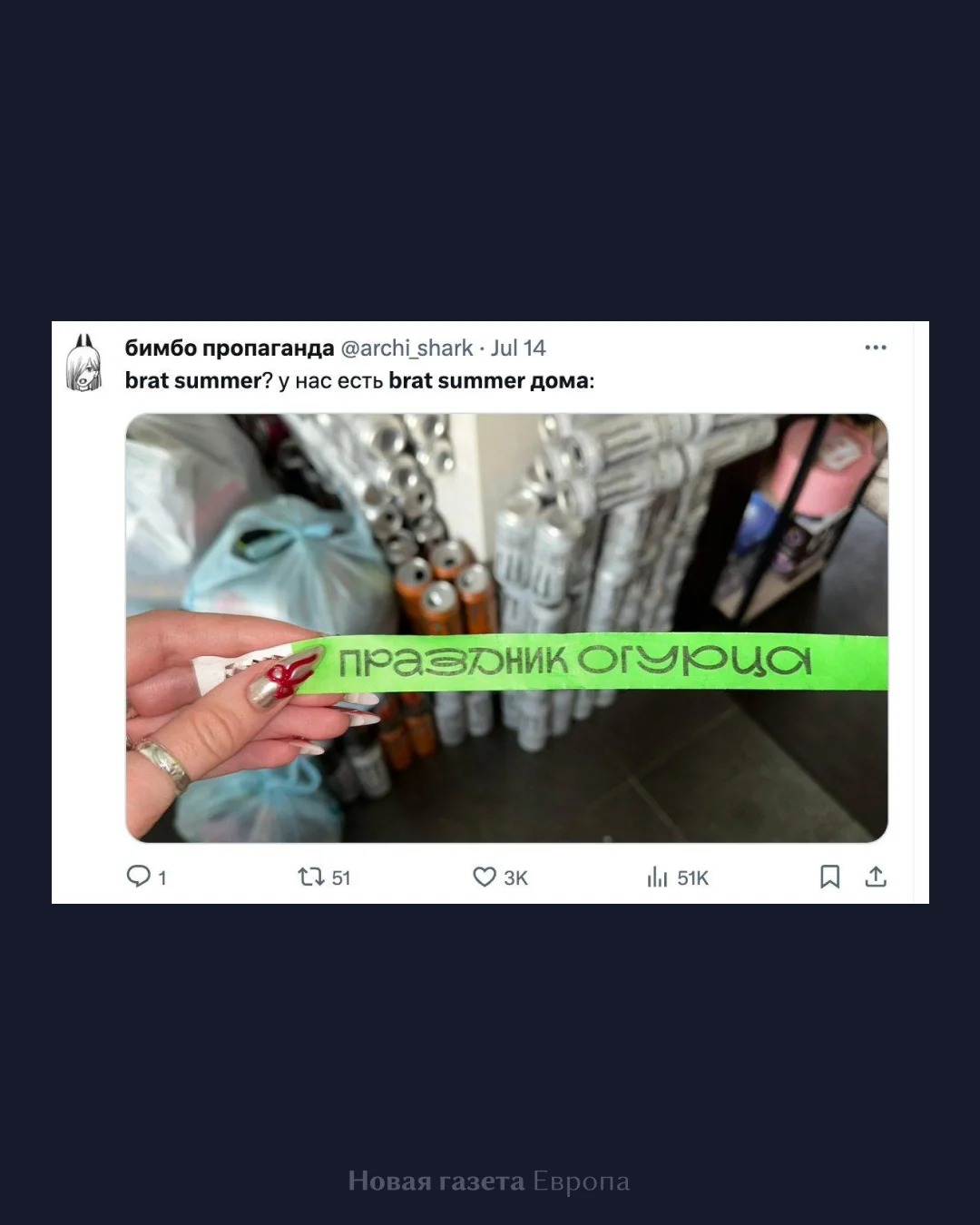 Русскоязычные пользователи X также узнавали знакомый лаймово-зеленый цвет в российских реалиях и шутили про «brat summer дома»: