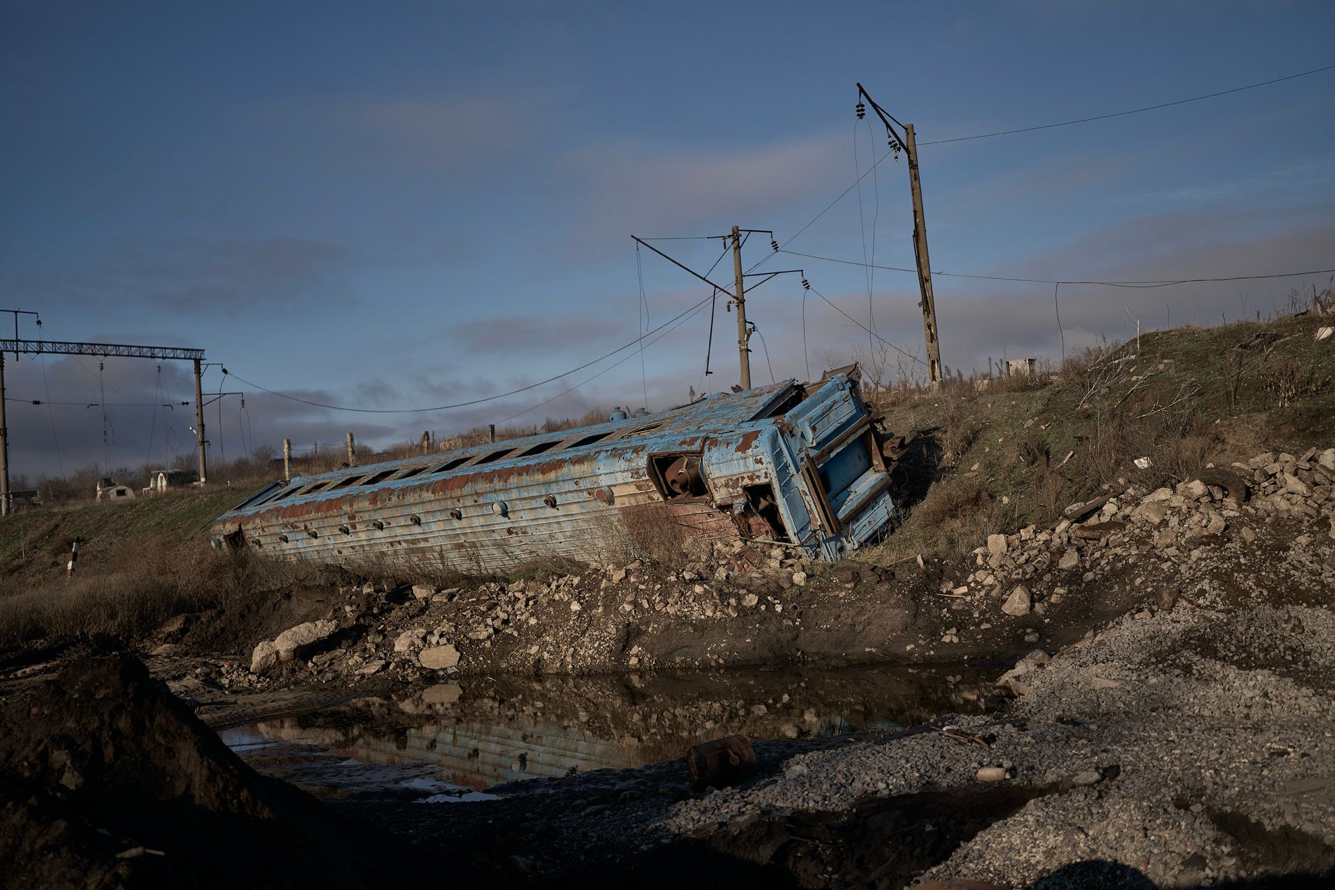 Город Купянск Харьковской области — одна из самых горячих точек на фронте в последние месяцы. В конце октября Вооруженные силы (ВС) РФ после многих месяцев тяжелых боев вышли к реке Оскол южнее Купянска. Чтобы продвинуться вдоль реки на юг, им нужно захватить город: главная дорога, по которой можно снабжать войска у Оскола, идет через Купянск от Сватово. В ноябре две колонны бронетехники ВС РФ ворвались в восточную часть города вдоль железной дороги и высадили десант в жилой и промышленной застройке. ВСУ нанесли удары по наступающим войскам: подбили несколько машин и взяли в плен несколько российских военных. В итоге закрепиться в Купянске ВС РФ пока не удалось. Но наступление продолжается. О том, как выглядят бои за город и жизнь в осажденном Купянске, — в нашей галерее.