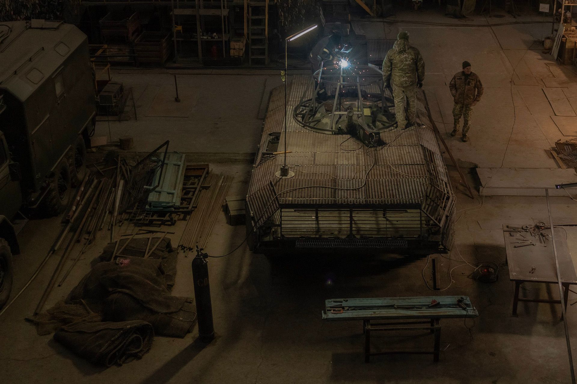 В начале декабря «Медуза» сообщила, что российские войска повсеместно изменили тактику боя: вместо малых штурмовых пехотных групп ВС РФ теперь часто используют для атак колонны БМП, БТР и бронированных тягачей, которые высаживают десант прямо на позиции противника. Такие атаки нередко приводят к успеху, что позволяет российской армии наступать быстрее, но потери техники растут. В то же время ВСУ изо всех сил пытаются удержаться в Курской области — и ВС РФ пока далеки от того, чтобы выбить противника со своей территории, даже несмотря на участие в боях на стороне России северокорейских солдат. В этой галерее мы показываем, как военнослужащие обеих армий ремонтируют подбитую технику (стоит учитывать, что зачастую стороны стараются скрыть местоположение мастерских от противника).