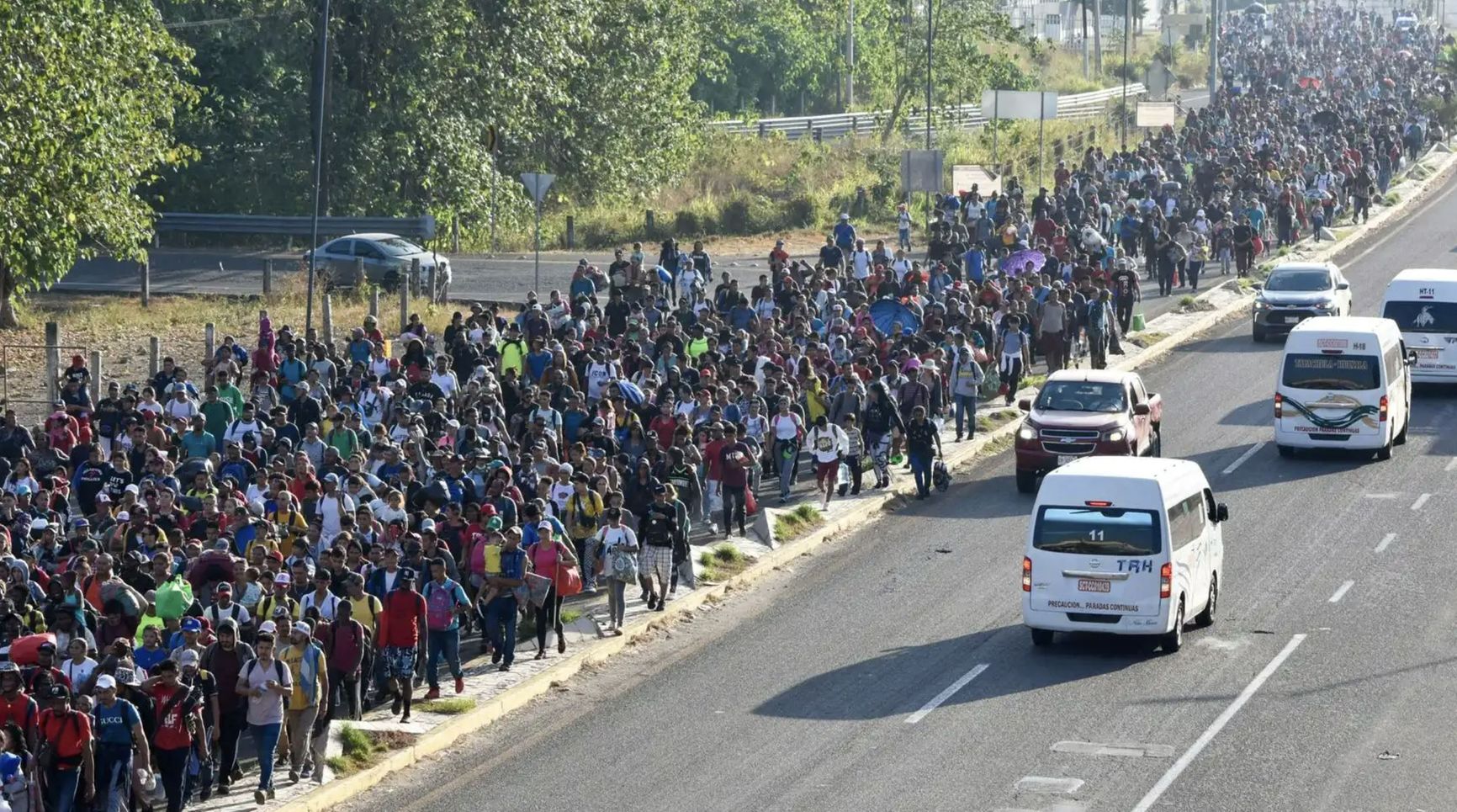 Группа из, по некоторым оценкам, восьми тысяч мигрантов по дороге из мексиканского города Тапачулу к границе США, декабрь 2023 года / Associated Press
