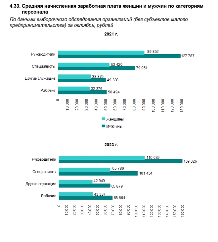 Таким образом, разрыв в оплате труда мужчин и женщин на руководящих должностях в 2023 году составил 49,1%. Предыдущий рекорд, согласно данным Росстата, был зафиксирован в 2005 году, когда гендерный разрыв составлял 50%. С тех пор он в основном сокращался и не превышал 49%.