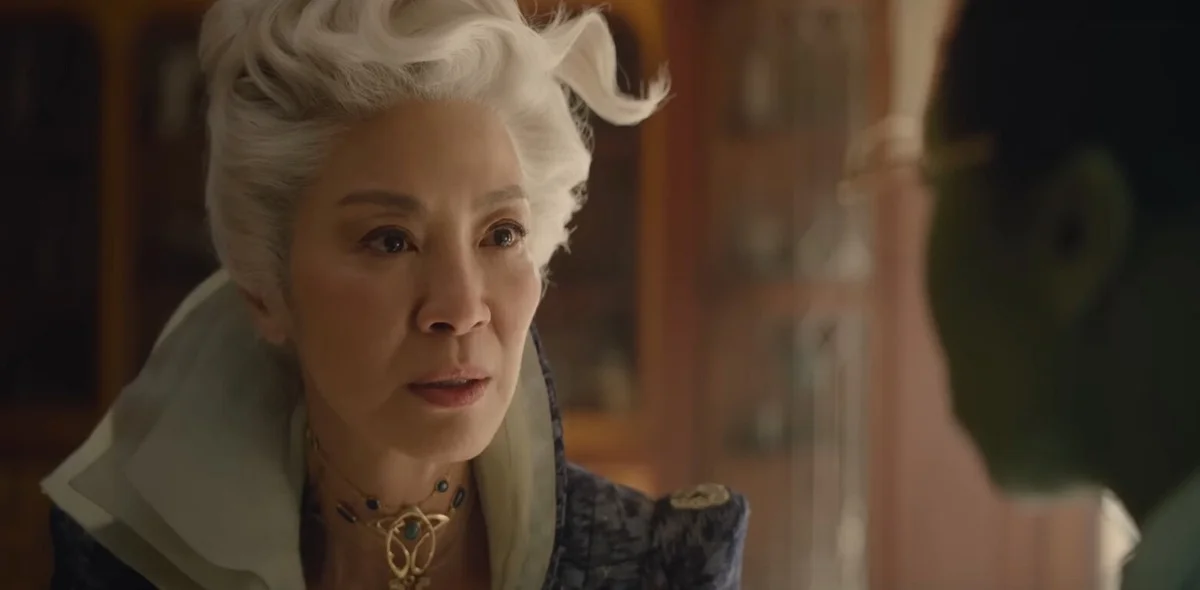 «Какое счастье увидеть… меня!» Златоволосая прелестница ведьмочка Глинда Арианы Гранде, вся в розовом — в розовом пузыре спускается почти с облака к народным массам. Она купается в любви и радости. Во-первых, Дороти уже вылила ведро воды на злую и тут же истаявшую Ведьму, поэтому народ страны Оз празднует. И во-вторых, кто не счастлив видеть, как белокурая Глинда (будущая Добрая Ведьма Севера) выплывает из своего пузыря — все любят красивое-нежное-зефирное. И никто не любит — Эльфабу (Будущую Злую Ведьму Запада). Зеленую от рождения, как Шрек, юную ведьму (Синтия Эриво) терпеть не может даже ее отец, над ней издеваются с детства. И в университете Шиз сокурсники ее изводят. А рядом контрастом снисходительная милейшая розовая блондинка, недалекая, амбициозная, мечтающая творить чудеса. Эльфаба умна, иронична, сдерживая слезы от насмешек и издевательств, может впасть в ярость — тогда несдобровать обидчикам, земля у них начинает дрожать под ногами. Глинда и Эльфаба антагонистки и соседки по комнате в общежитии в университете Шиз (бледное подобие Хогвартса), где они изучают магию и заклинания под руководством местной профессуры и королевской директрисы мадам Моррибл (Мишель Йео).