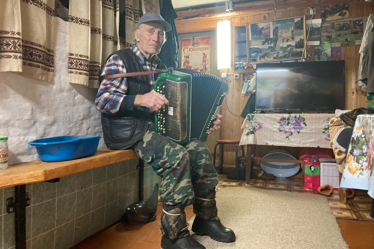 Кроме политики, говорит Юрий Васильевич, в телевизоре его интересует программа Малахова. Название он не помнит, но туда, говорит, приглашают «простых людей, чтоб они показали таланты». У Юрия Васильевича тоже есть талант, он играет на баяне.