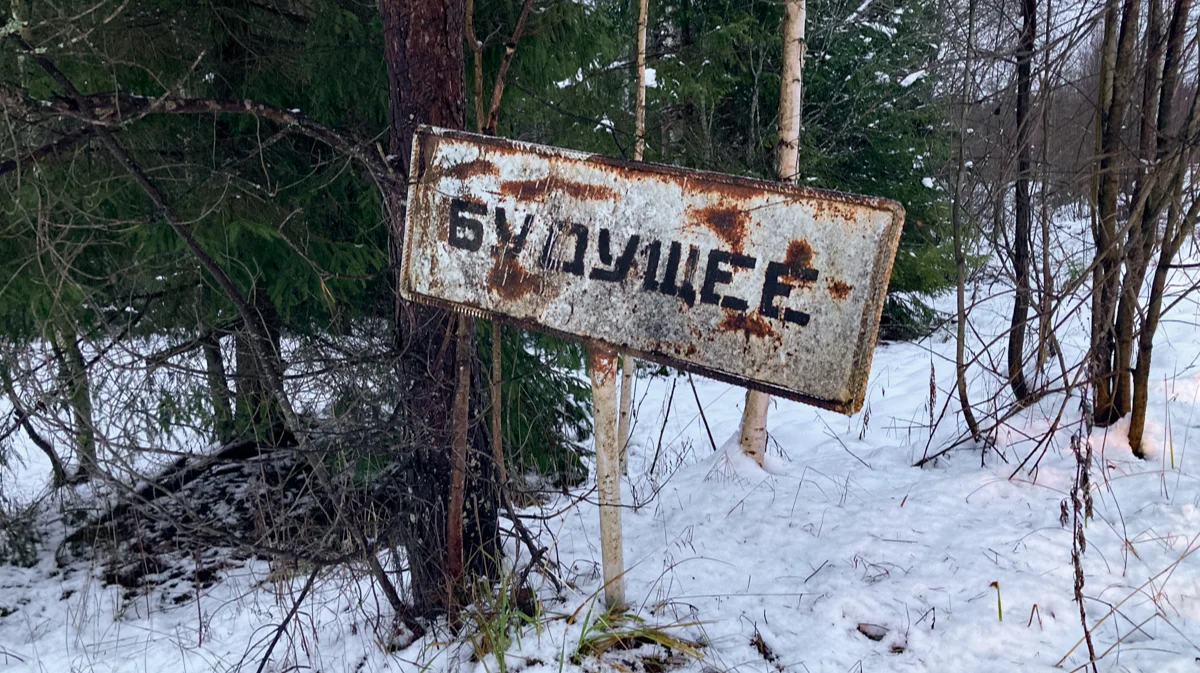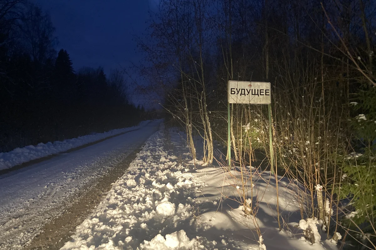 На обочине дороги, петляющей посреди леса, в снегу неожиданно выросла табличка с названием деревни. Перекошенная, изъеденная ржавчиной, слово на ней можно разобрать с трудом: «Будущее». Рядом есть еще одна, почти новая, хотя краска и на ней уже потрескалась. Те, кто ставил новый дорожный знак, не убрали старый. За ним и начинается деревня.