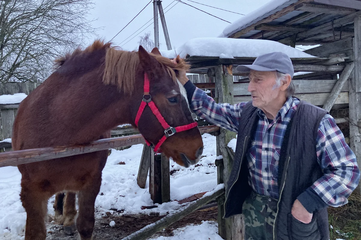 Мальчик — это старый конь. Юрий Васильевич не помнит, сколько Мальчику лет, но говорит, что если по-лошадиному, так они сверстники.