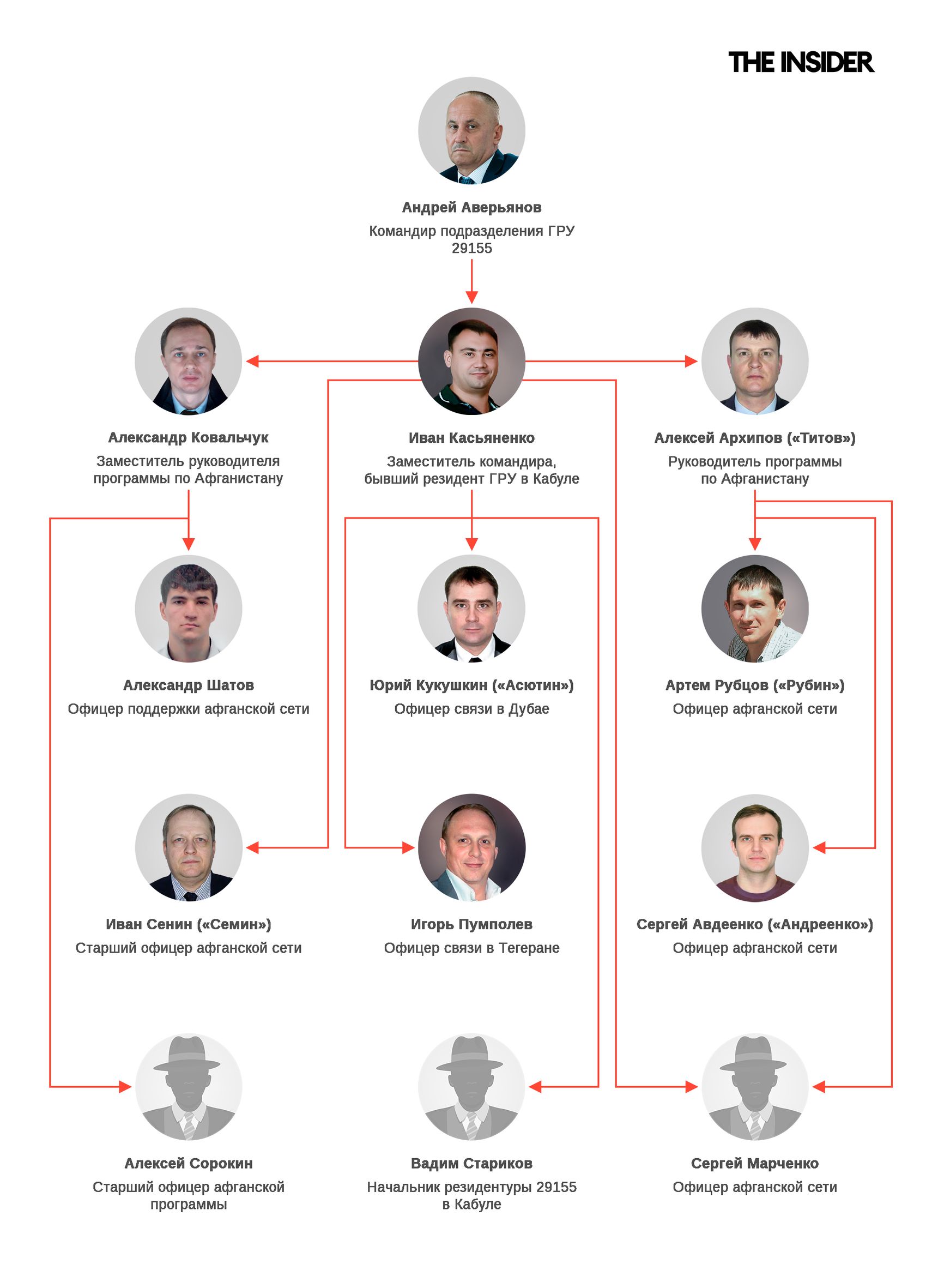 Расследование The Insider не только выявило доказательства, подтверждающие отчет разведки 2020 года, но и обнаружило, что спецслужбы Афганистана предоставили властям США факты существования программы и арестовали нескольких ключевых пособников схемы вознаграждений. При этом американским и афганским спецслужбам было мало известно о людях, управлявших программой с российской стороны, поскольку многие из российских кураторов были известны только по позывным или псевдонимам. Новые данные, обнаруженные The Insider, заполняют пробелы, идентифицируют офицеров, скрывающихся за кодовыми именами, — это офицеры все той же войсковой части 29155, известной по отравлению Скрипаля и диверсиям в Европе.