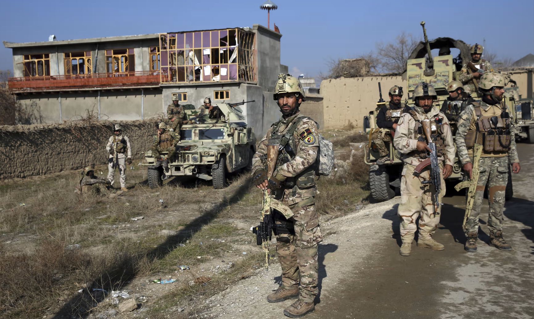 Афганские солдаты на авиабазе в Баграме в момент теракта