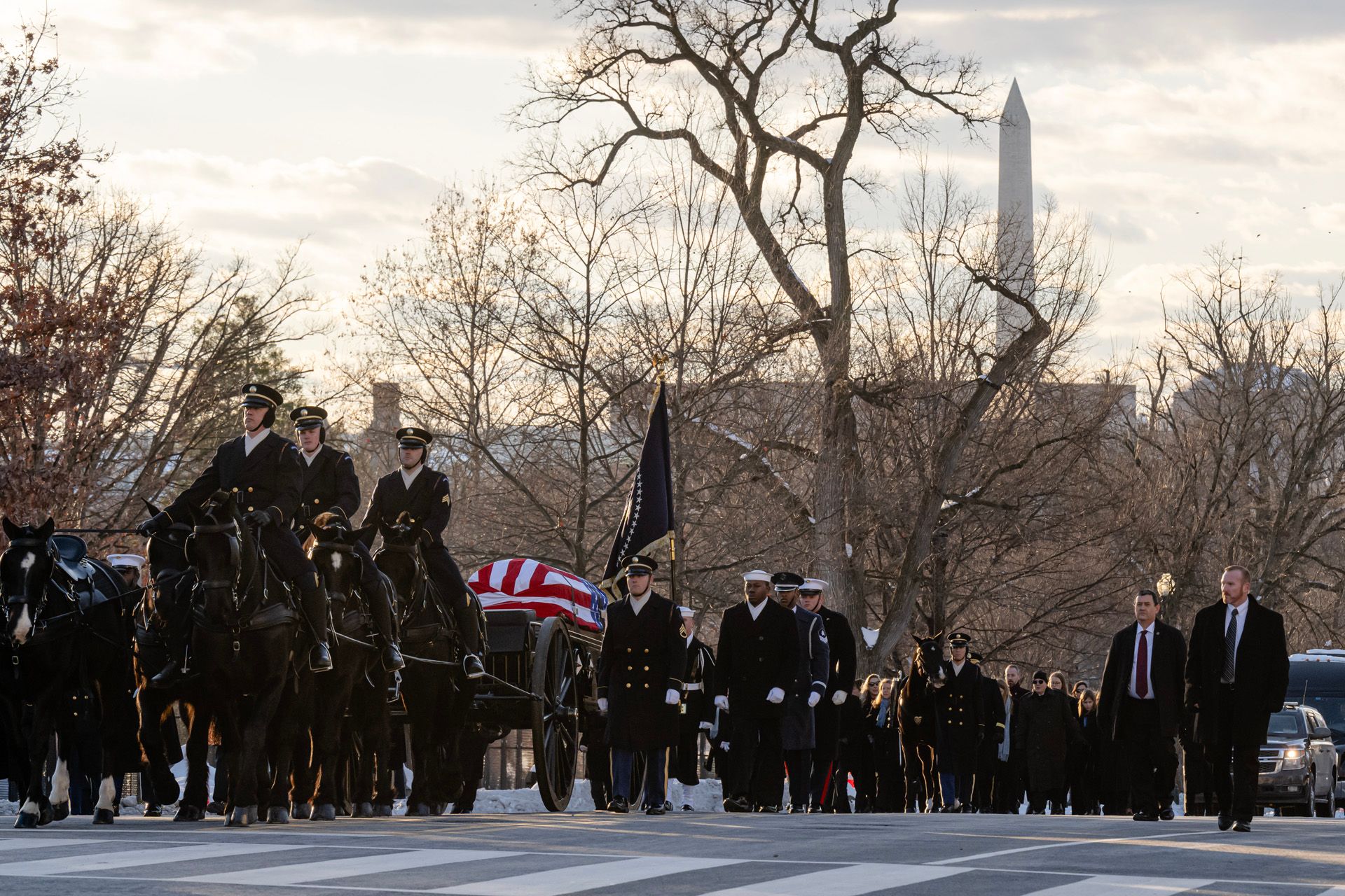 В Вашингтоне с государственными почестями простились с 39-м президентом США Джимми Картером. Он умер 29 декабря в возрасте 100 лет. Картер был самым долгоживущим президентом в истории США. Прощание с ним началось 4 января в Атланте и продолжилось в Вашингтоне. Гроб с телом Картера выставили в центральном зале Капитолия, где с ним могли проститься конгрессмены и общественность. 9 января в Кафедральном соборе святых Петра и Павла прошла панихида по Картеру. Ее гостями стали пять президентов США: действующий глава государства Джо Байден, избранный президент Дональд Трамп, 44-й президент Барак Обама, а также его предшественники Джордж Буш-младший и Билл Клинтон. После завершения службы гроб с телом Картера спецбортом отправят в родной город 39-го президента в штате Джорджия для погребения.