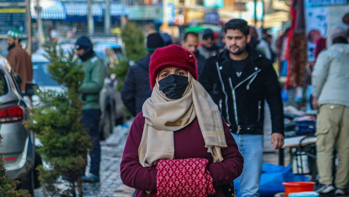 Женщина в защитной маске на улице в Сринагаре, Индия, 7 января 2025 года. Фото: Firdous Nazir / NurPhoto / Shutterstock / Vida Press