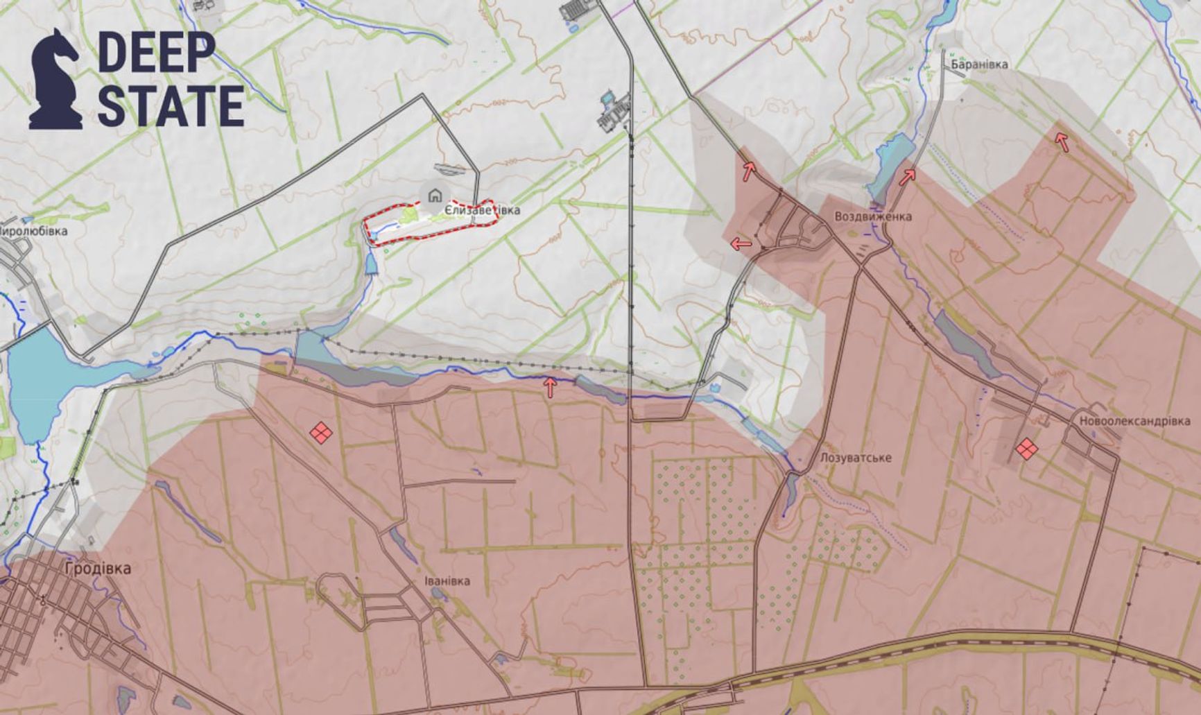 DeepState констатирует захват российскими военными Воздвиженки к востоку от Мирнограда и Солёного юго-западнее Покровска, а также продвижение около Ясенового. Вместе с этим аналитики проекта описывают отраженную атаку от Воздвиженки в сторону Елизаветовки: заявляется, что из задействованных шести единиц военной техники, четыре были подбиты на подходе, а еще две — в самом селе.