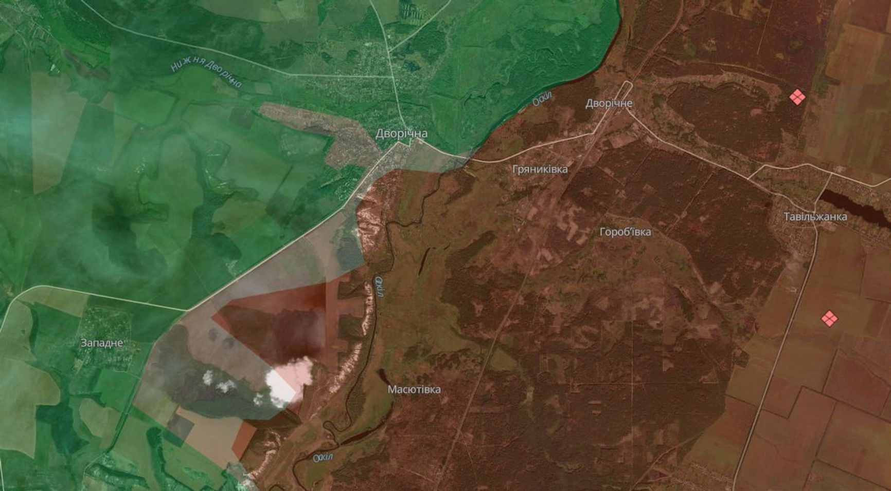 DeepState фиксирует успехи ВС РФ на плацдарме на правом берегу реки Оскол как к северу от Двуречной, так и южнее, в сторону села Захидного. Аналитики проекта также отмечают расширение «серой зоны» на этом участке и попытки закрепиться в Двуречной.