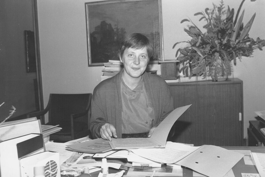 Такая радикальная позиция оказывается близка Христианско-демократическому союзу (ХДС) — партии Гельмута Коля, тогдашнего канцлера ФРГ. Происхождение и взгляды Меркель оказываются как раз кстати, и после первых же выборов он дает ей возглавить Министерство по делам женщин и молодежи (или, как он сам его называет, «Министерство женщин и прочей фигни»).