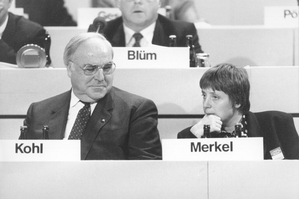 Следующие годы в двух правительствах Коля проходят прежде всего в борьбе с консервативным крылом собственной партии. Внутрипартийный расклад сил меняется после того, как верхушка ХДС и лично Гельмут Коль оказываются замешаны в коррупционном скандале. В партии возникает запрос на обновление, и Меркель становится ее главой:
