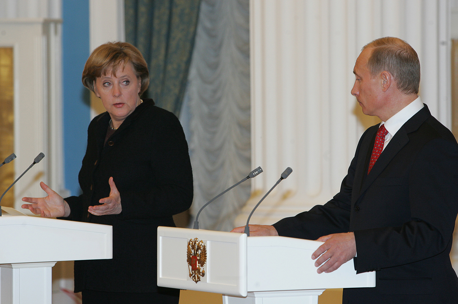 С одной стороны, отношения Меркель и Путина не завязались с самого начала. В отличие от Шредера, Путину не удалось найти в Меркель товарища, которому можно подсесть на уши и напевать песни про злых американцев. Во время визита Меркель в Томск в 2006 году он прокатил ее по бедным районам города, застроенным разваливающимися деревянными домиками и похвастался: «Точно таких же бедных людей американское правительство подкупило в Украине и подговорило их принять участие в Оранжевой революции в 2004 году. Я такого никогда не допущу в России».