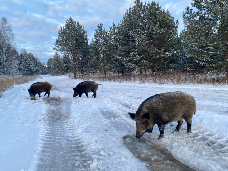 Самый интересный период работы для Панковой начинается зимой — в это время в заповеднике начинают считать кабанов. Это животное — главный научный интерес Надежды. Чтобы вести подсчет, нужно «знать каждое кабанье стадо в лицо», выслеживать их и наносить на карту места их обитания.А значит, либо встретить стадо в лесу, либо найти его следы. Ими могут быть и буквально следы копыт на земле — при холодной погоде их можно разглядеть даже спустя несколько недель — и другие признаки жизнедеятельности. Например, кабаньи гнезда. Да, кабаны тоже «вьют» гнезда из веток деревьев и хвои и приходят туда ночевать.