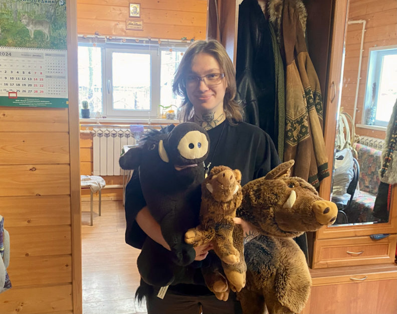Фаня, Фрея и Руфус еще подростки — осенью 2024 года им исполнился год — и весят всего по сто килограмм. Когда они вырастут, самки наберут еще 50 килограмм, а вот кабан Руфус станет втрое больше. У каждого из них свой характер, а Надежда общается с ними как с любимыми питомцами.