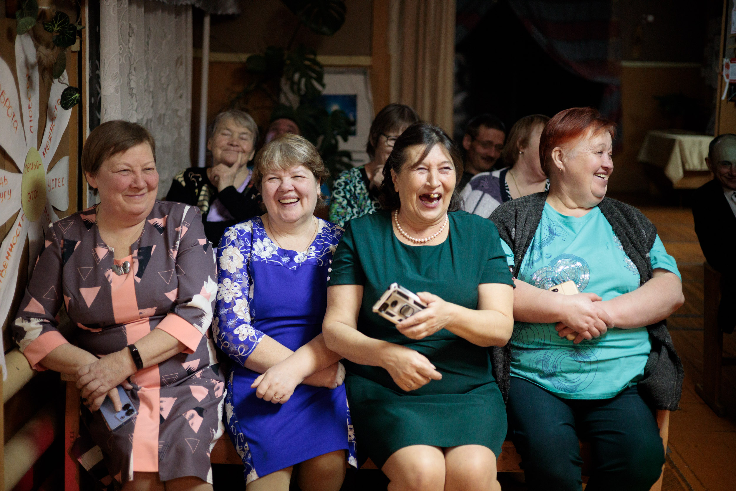 Жительницы села смотрят праздничный концерт
