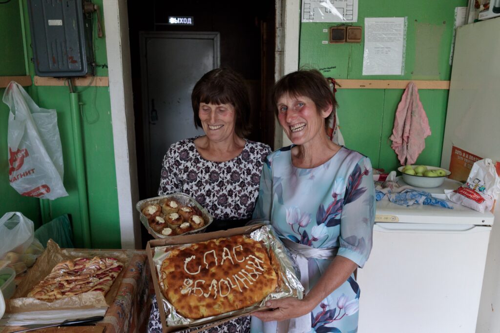 Жительницы села с выпечкой в день Яблочного Спаса