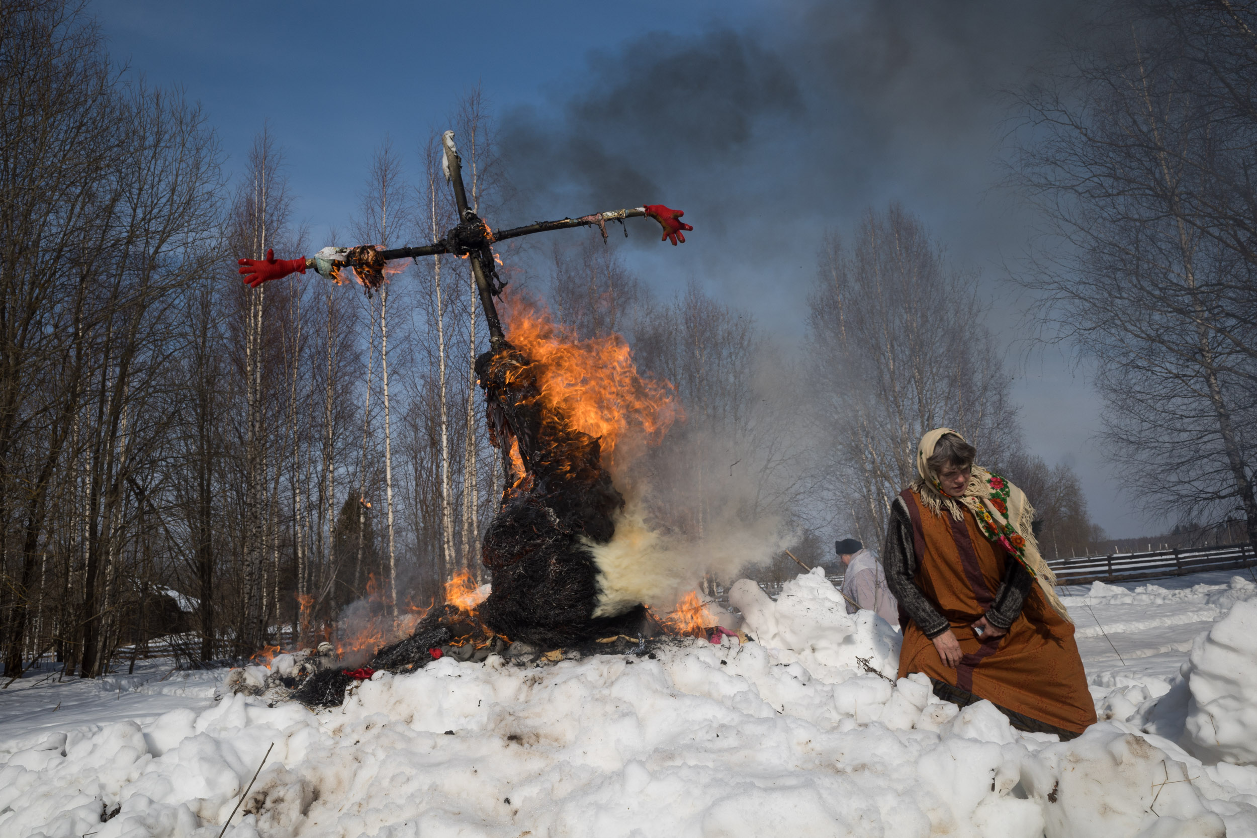 Сжигание чучела на Масленицу в деревне