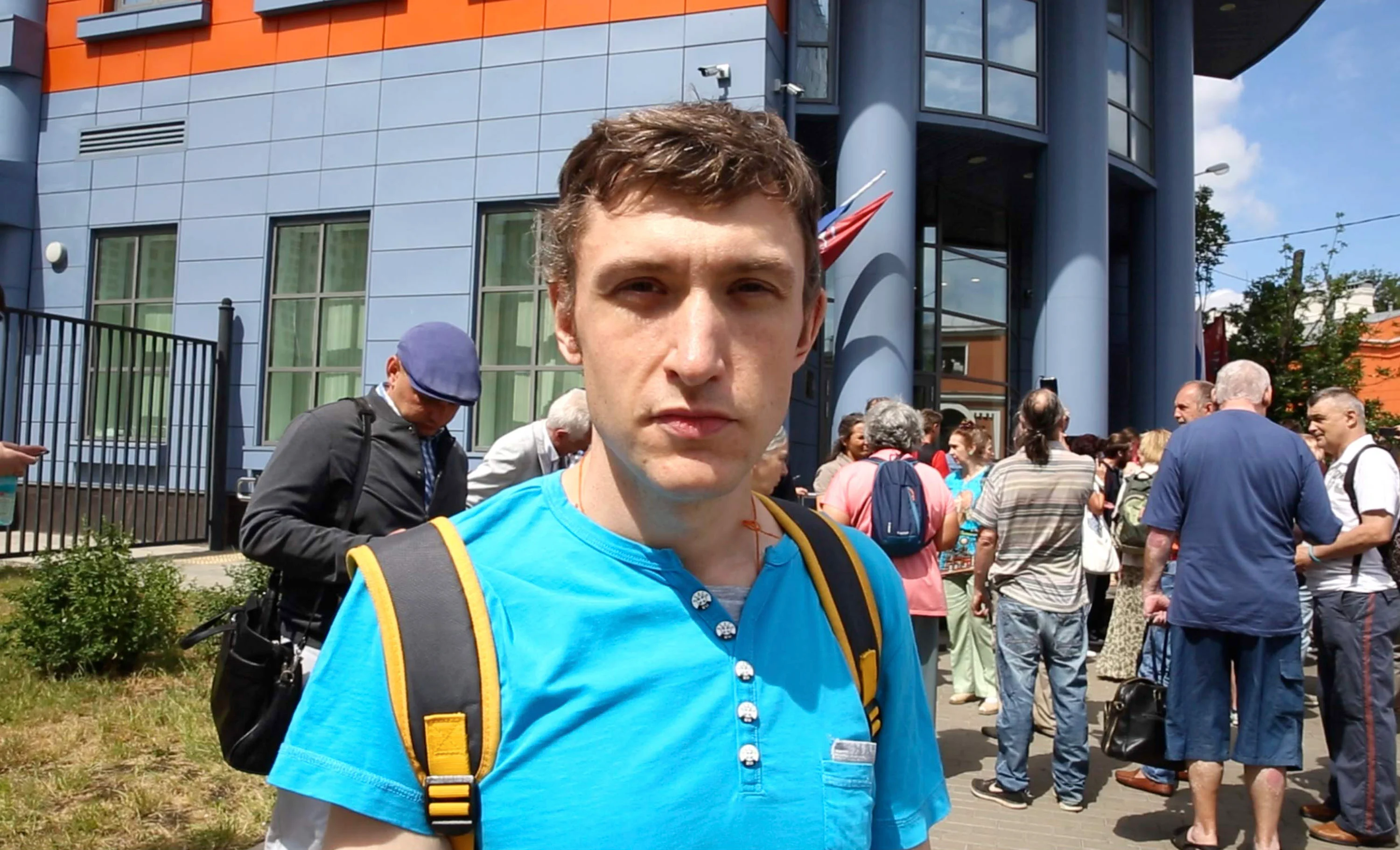 Константин Котов у Савеловского суда Москвы где рассматривается дело о донатах ФБК, 2024 год. Фото: Александра Астахова / Медиазона
