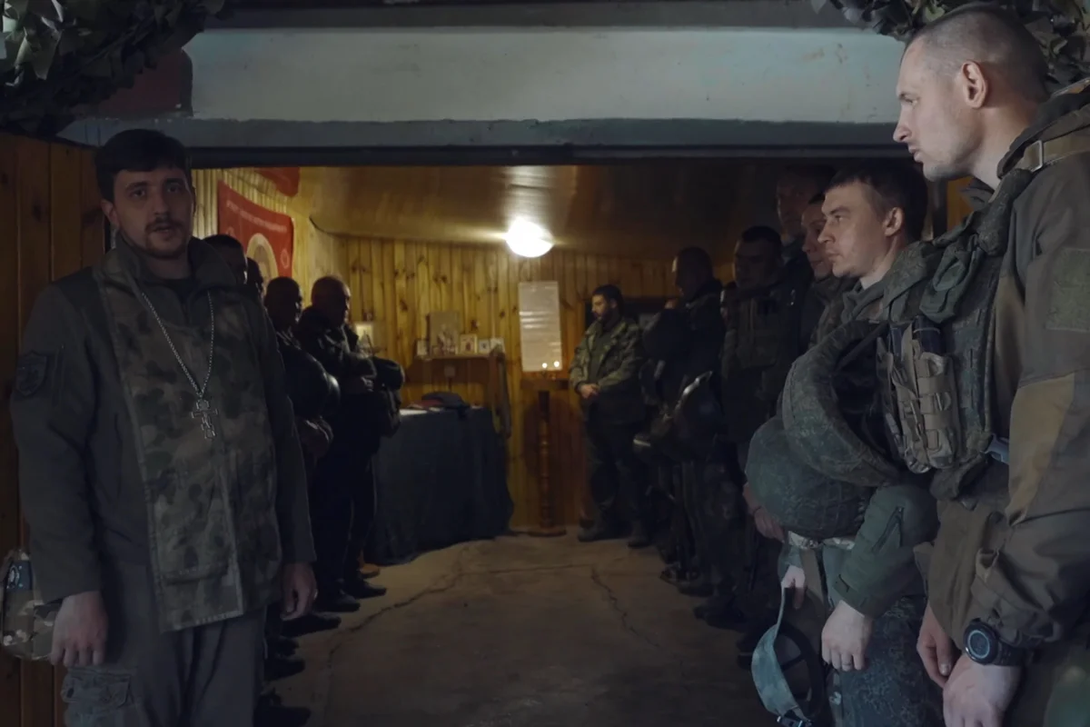 Так, в фильме «Я пришел закончить войну» (2024) священник Михаил заявляет на камеру, что убивать надо за дело, а пацифизм — это потакание злу. В фильме «Я приближаю победу» (2024) военный священник уходит добровольцем и спокойно воспринимает факт, что если ему придется убивать, то в дальнейшем он не сможет продолжить служение. Для него война — это не убийство, а «противостояние, связанное со смертью». Он ведет небольшую экскурсию по расположению своего подразделения, камера выхватывает иконы, плакат со святым образом, бронежилеты, каску — знаки божественного и предметы амуниции смешиваются в причудливом коллаже, словно свидетельствуя, что фронтовой быт буквально пропитан православием. Всё это сопровождается словами, что человеку нужен Бог, дабы не потерять человечность. Завершается фильм совместной молитвой с приехавшим из военного отдела синода священником.