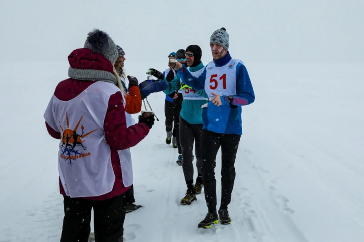 Снимал с дистанции действительно всех. Даже того испанца с татуировкой Байкала на спине, влюбленного в наш забег, а ему четыре километра оставалось. Но он бы потерялся. Одному человеку я только позволил закончить — альпинисту Виктору, нашему соотечественнику, он исходил Гималаи, все горы, знаком с такими ветрами, ориентировался хорошо. Спрашиваю его, как он. Всего пару фраз ответил, и мне стало ясно, что сто процентов он дойдет. Знает, как заметает, какие бугорки образуются, как кончик флажка может из снега показываться, наручная джи-пи-эска у него, ну и веселый он был — я в глаза ему посмотрел.